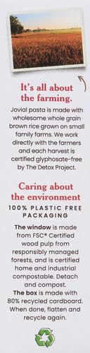 • 100% ORGANIC & NON-GMO PROJECT VERIFIED - Jovial Brown Rice Pasta is made from organic brown rice flour and water. It is USDA Certified Organic, Non-GMO Project Verified, and tested for glyphosate