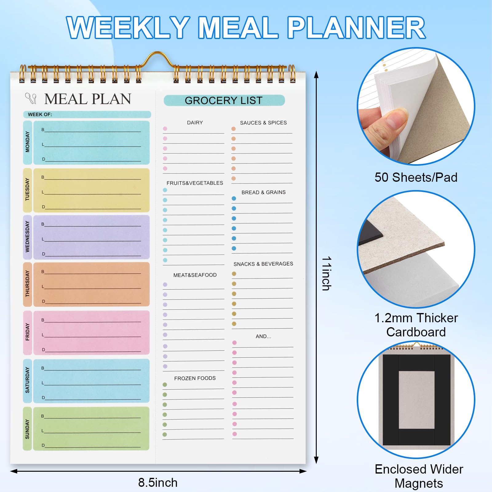 Joyberg Meal Planner Notebook 8.5x11”, 50 Sheets Magnetic, Double Helix Meal & Grocery List, Wall-Mountable Menu Planner for Daily & Weekly Plan