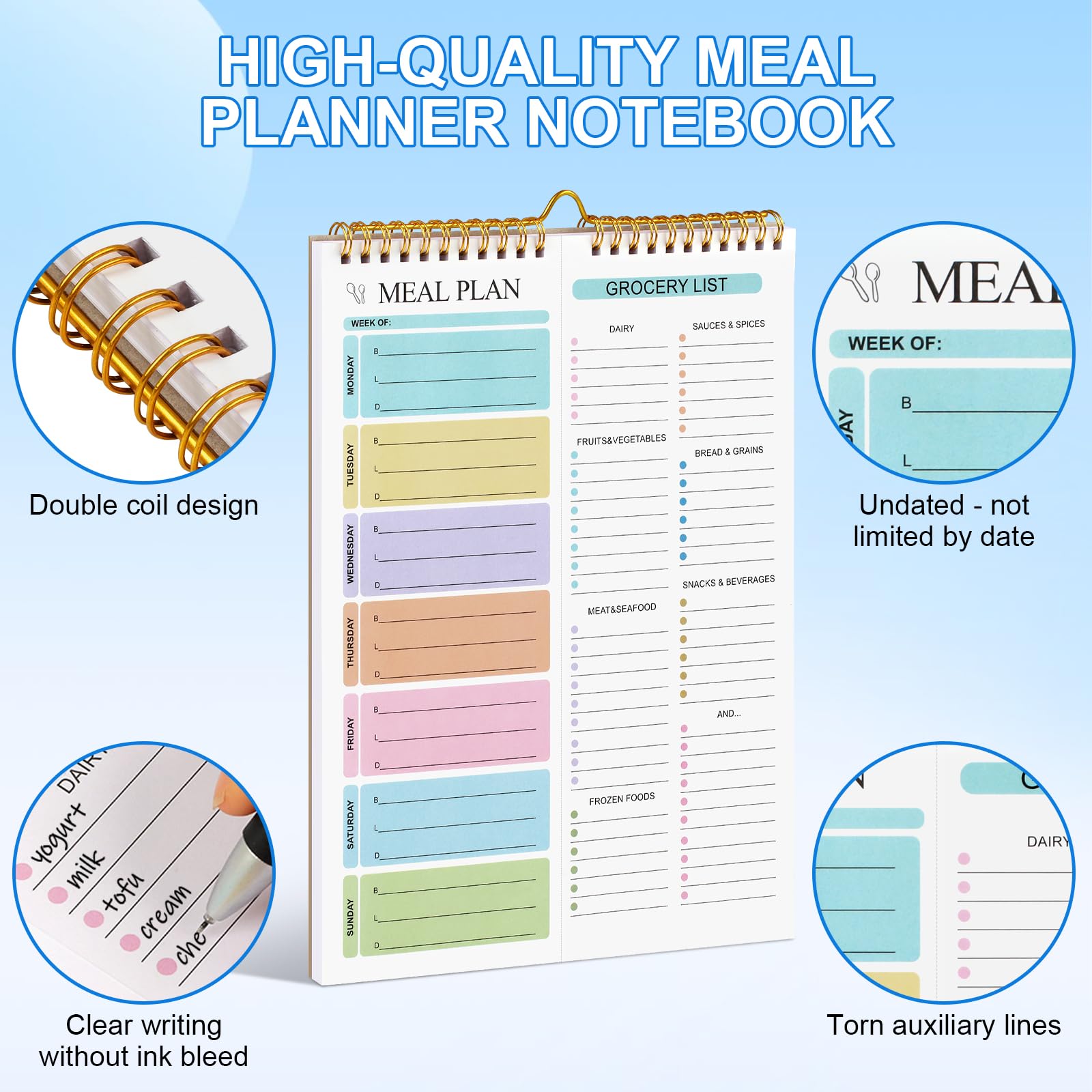 • WALL-MOUNTED MEAL PLANNING PADS: The weekly meal planner notebook has a double spiral structure, easy to turn the pages, and comes with a matching suspension rod, all made of iron, sturdy and durable, hanging without deformation, and you can hang it anywhere you want to hang it.