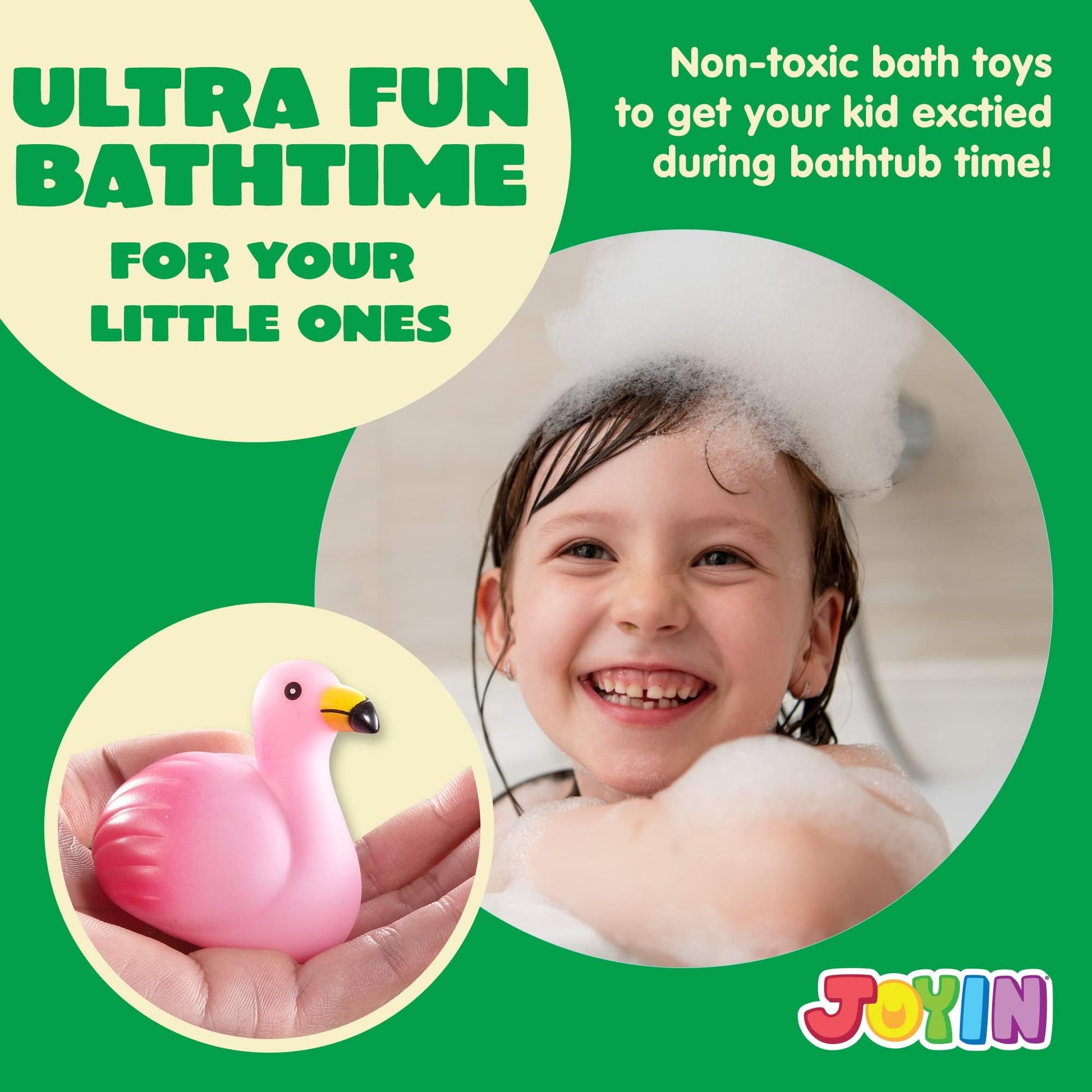 • GREAT VALUE! JOYIN 12 Packs of light-up bath toys includes 12 different types of marine animals bathtub toys for kids. Each animals is around 2.7-inch. These animals bath toys are brightly colored to bring your kids' bath experience a lot of fun!