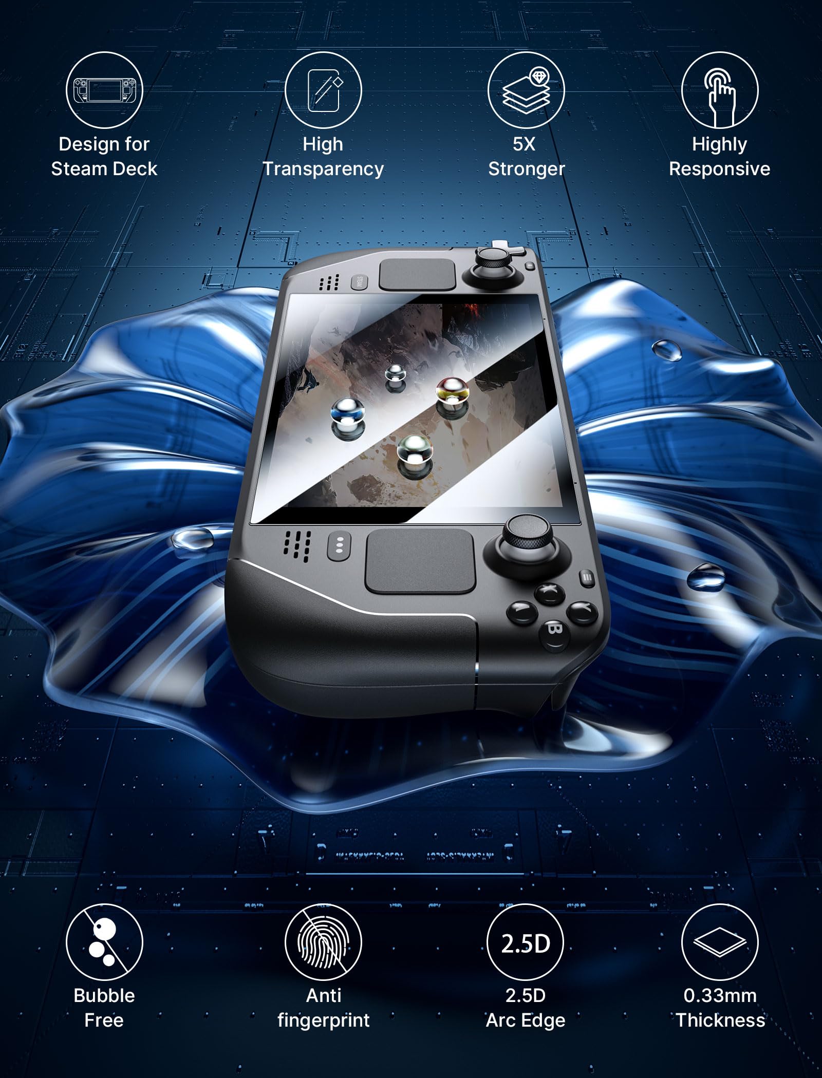• Easy to Install: Comes with a guiding frame that allows you to easily install the screen protector to your Steam Deck / Steam Deck OLED without having to repeatedly align the edges