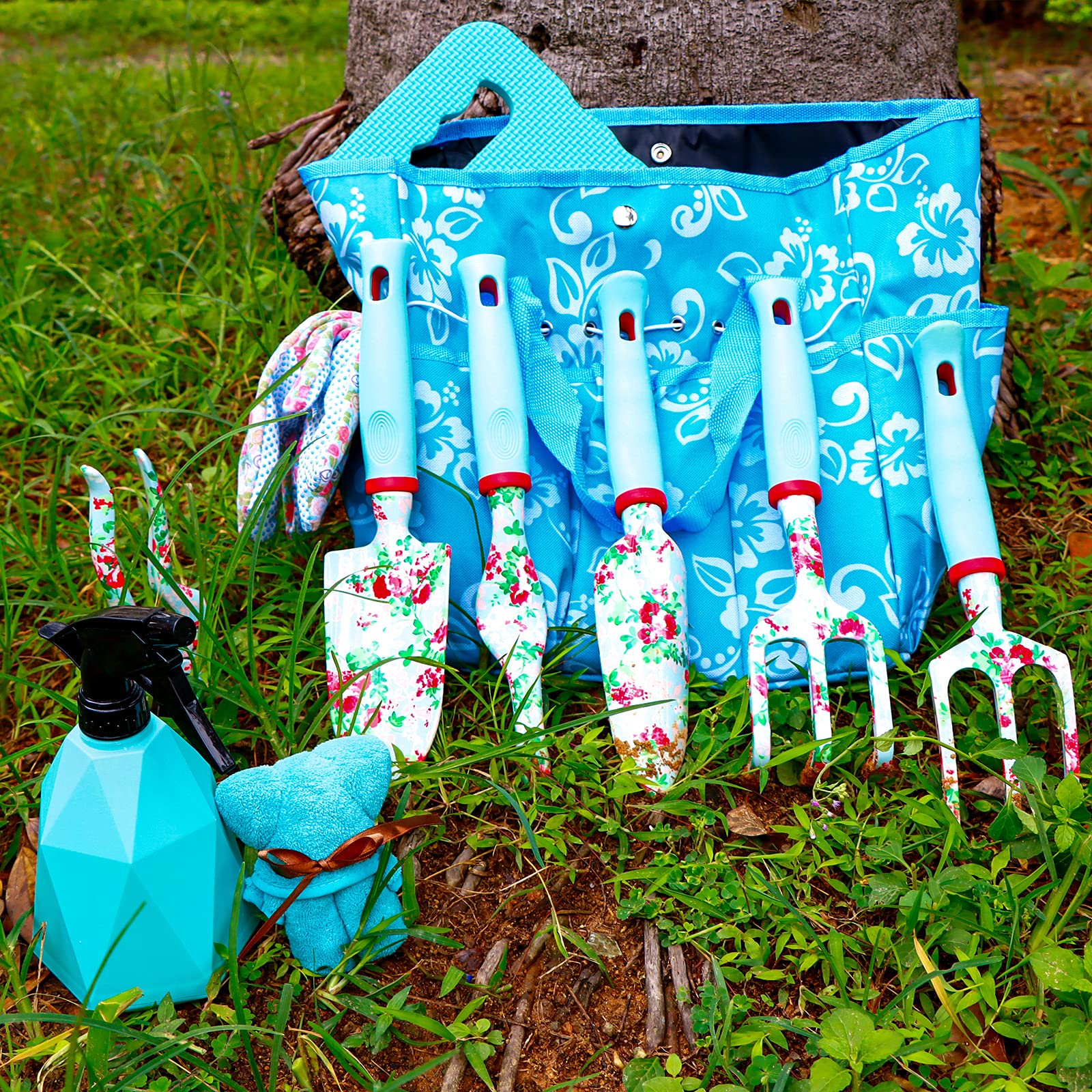 JUMPHIGH Womens Gardening Gifts Set - Floral Gardening Tools with Tote Bag - Gifts for Mom, Girlfriend or Women - Birthday, Christmas (Blue)
