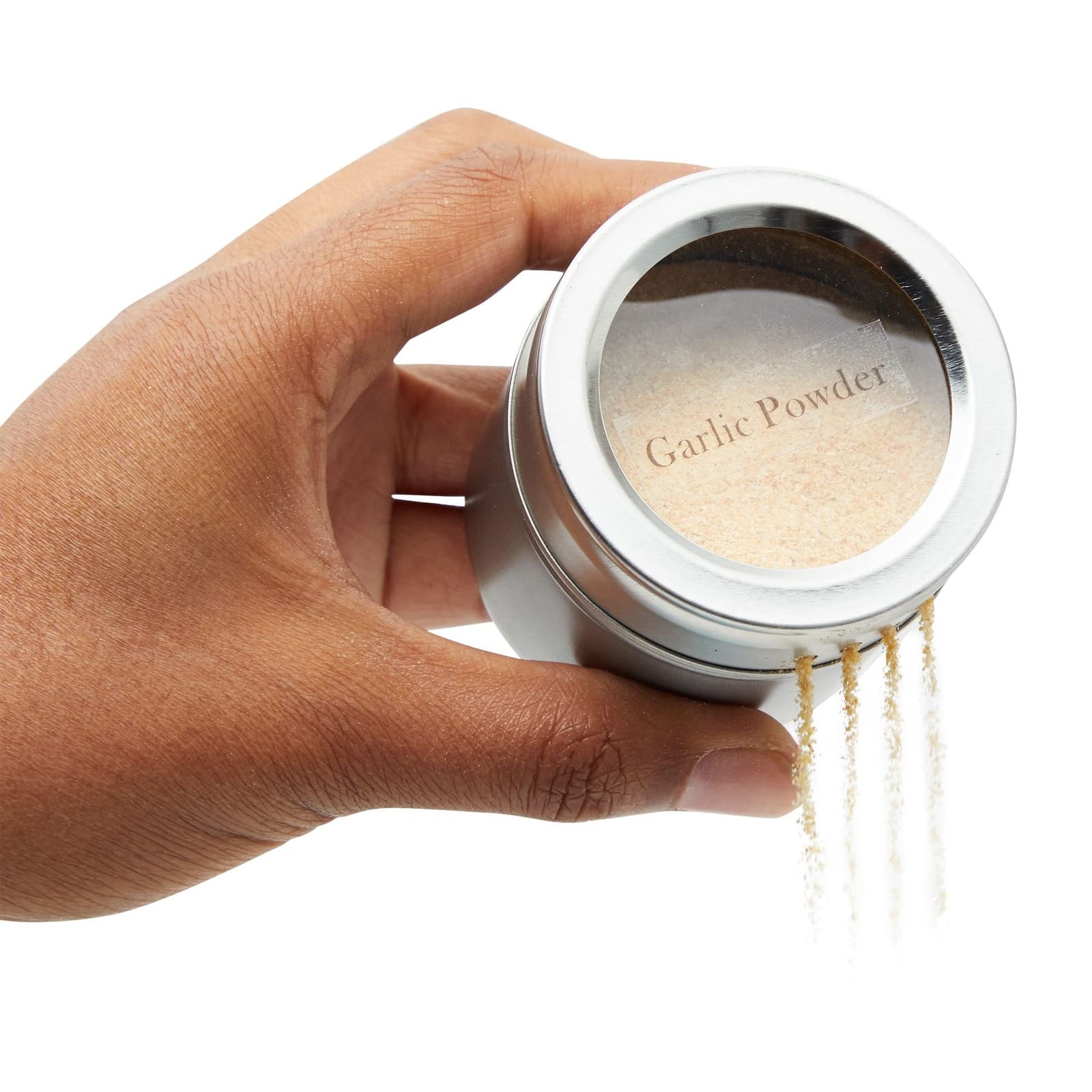 • Durable And Functional Design: The sleek magnetic spice tins are crafted from sturdy metal with transparent sift and pour tops; simply twist the clear lid to sprinkle seasoning or twist again to pour