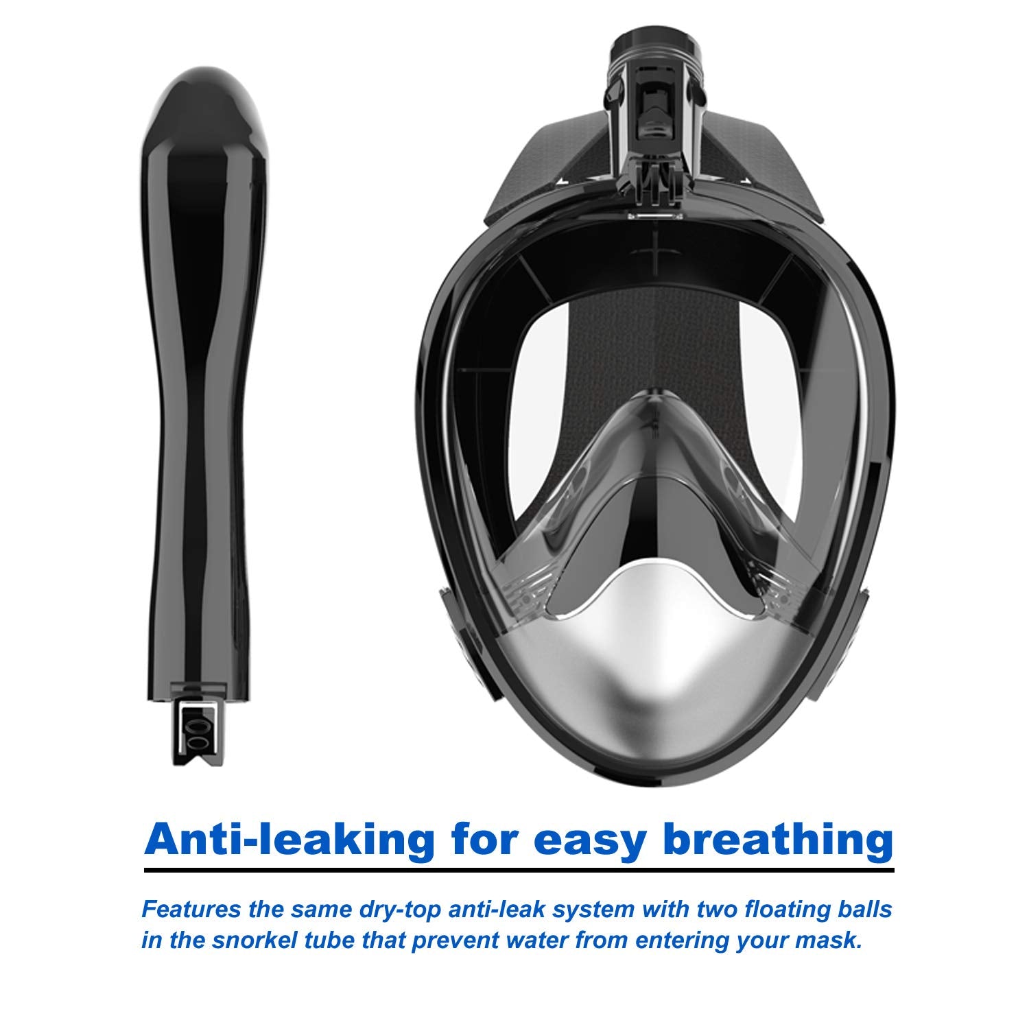 • PROFESSIONAL ANTI-FOG & ANTI-LEAKAGE - The full face snorkel mask is made of high-quality silicone. The entire snorkel mask is completely wrapped to achieve leakage prevention, and the silicone layer in the mask directly isolates the air from the nose and mouth. Hot air is not easy to condense on the mirror surface.