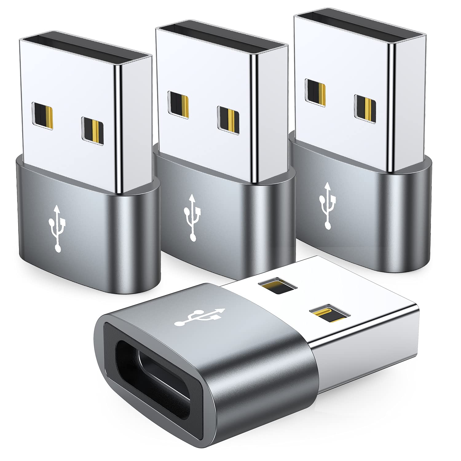 JXMOX USB C Female to USB Male Adapter 4-Pack, Type C to USB A Charger Cable Converter,Compatible with iPhone 11 12 13 14 15 16 Plus Pro Max,iPad Pro Air 4 Mini 6,Samsung Galaxy S24 S23 S22 S21,Pixel