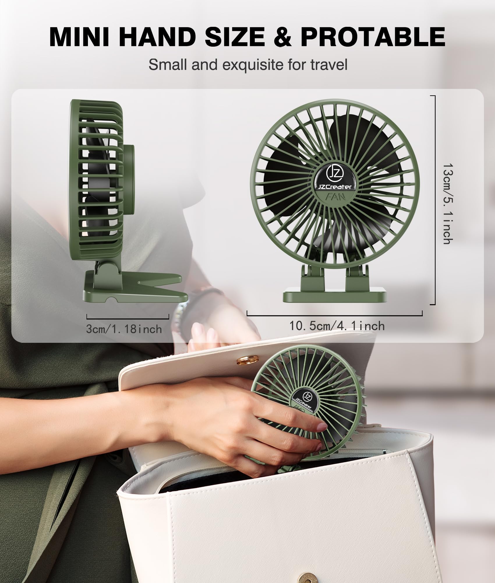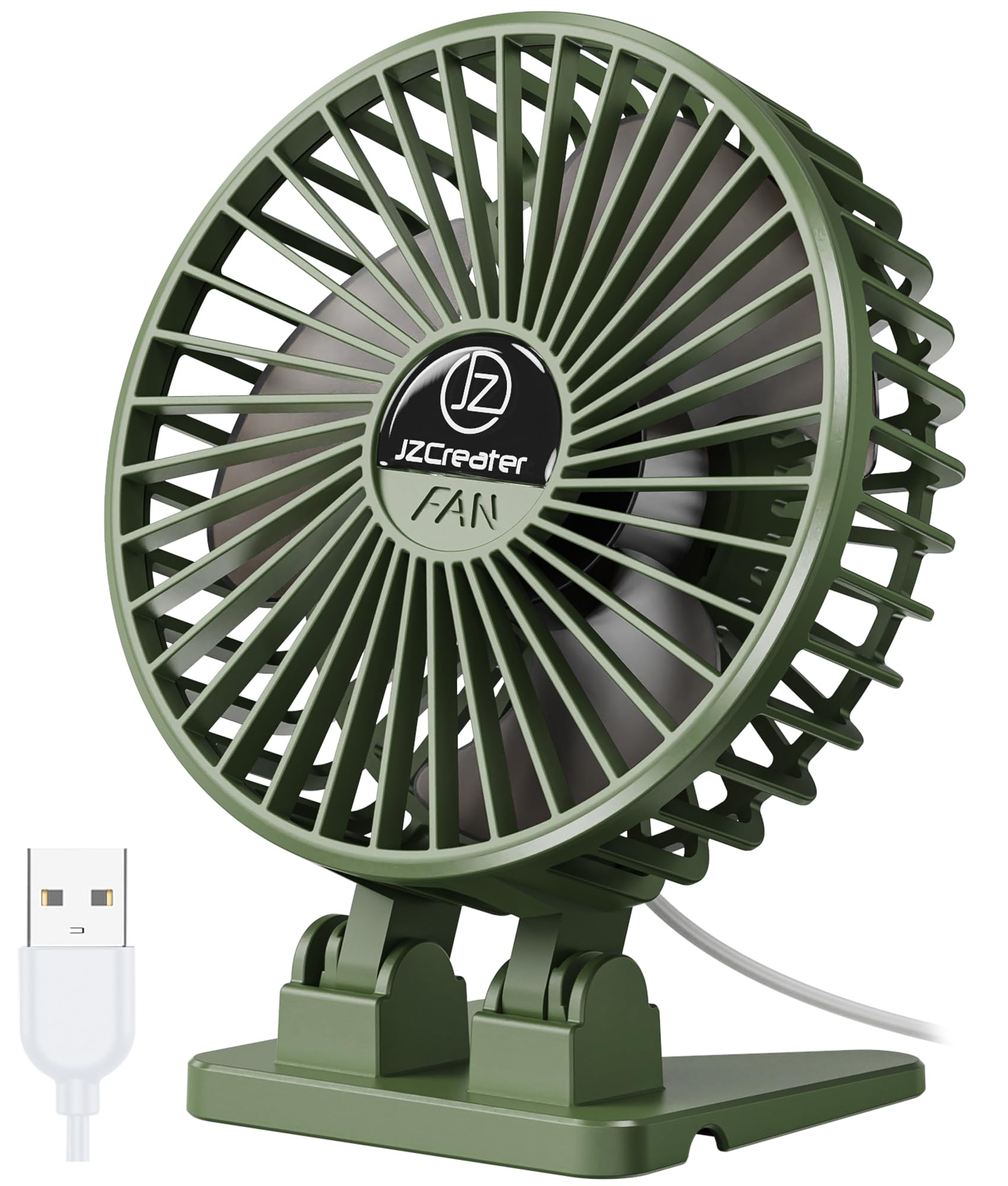 JZCreater USB Desk Fan, Mini Fan Portable, 3 Speeds Desktop Table Cooling Fans, Plug in Power Fans, Rotation Strong Wind, Quiet Personal Small Fan for Home Desktop Office Travel Bedroom, Army Green