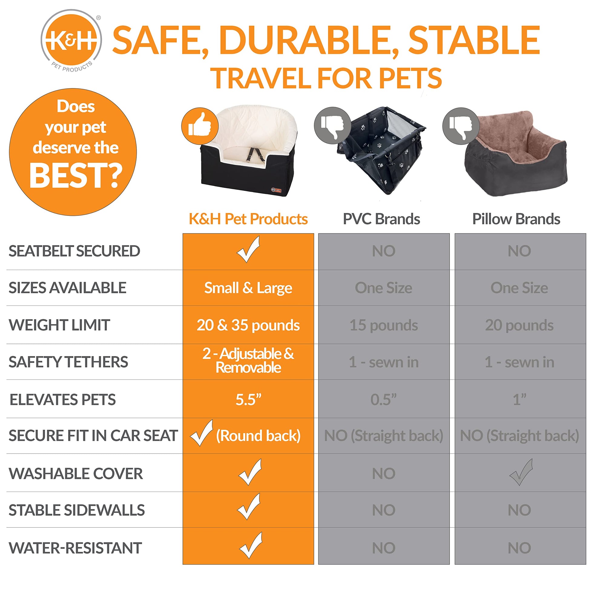 K&H Pet Products Bucket Booster Dog Car Seat for Small Dogs, Seat Belt Secured, 2 Safety Leashes, Washable Covers, Sturdy Pet Booster Seats for Traveling with Pets - Small Black/Cream