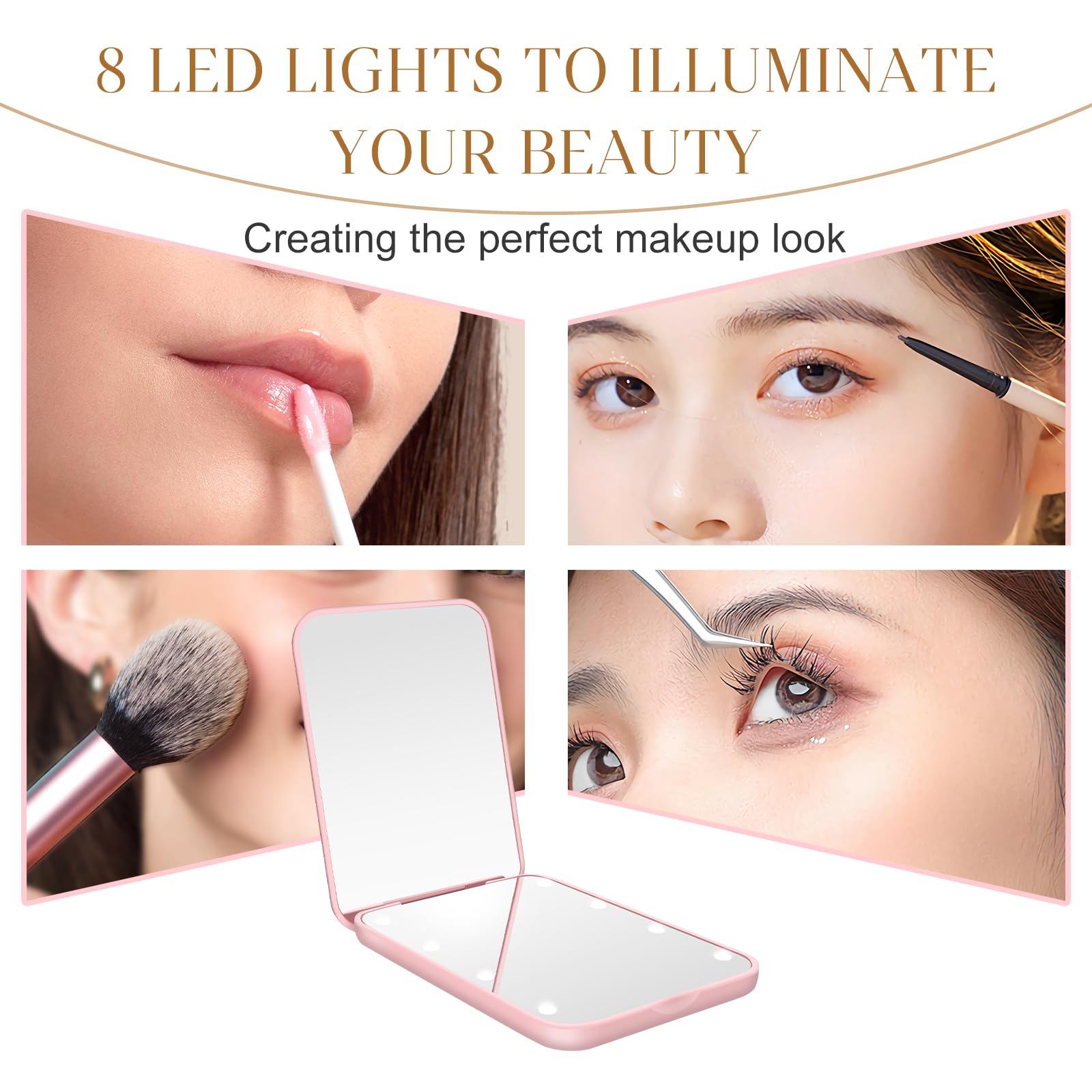 • [Stay Beautiful All the Time] - Our compact mirror is lightweight and compact, easy to carry, with a small built-in battery, which can help you save the time of charging, so that you can watch your facial makeup meticulously all the time. It's the perfect companion for you on the go. Whether you're in between makeup sessions or out and about, it can create a flawless look for you, so you can feel confident and beautiful on any occasion.