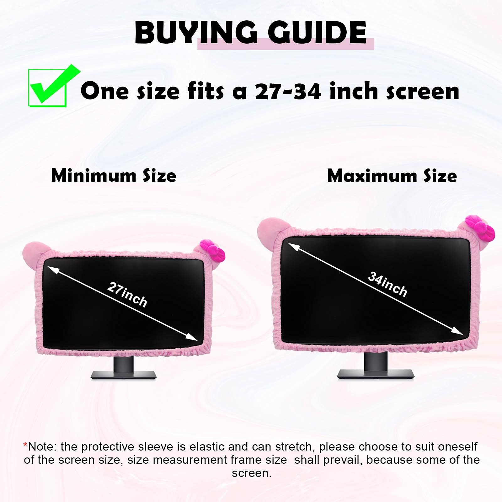 Kakurookie 23'' - 34'' Computer Monitor Protective Cover with Cat Ear Design, Cute Monitor Dust Cover with Furry Design, Elastic Dustproof, Suitable for PC, Tablet, TV