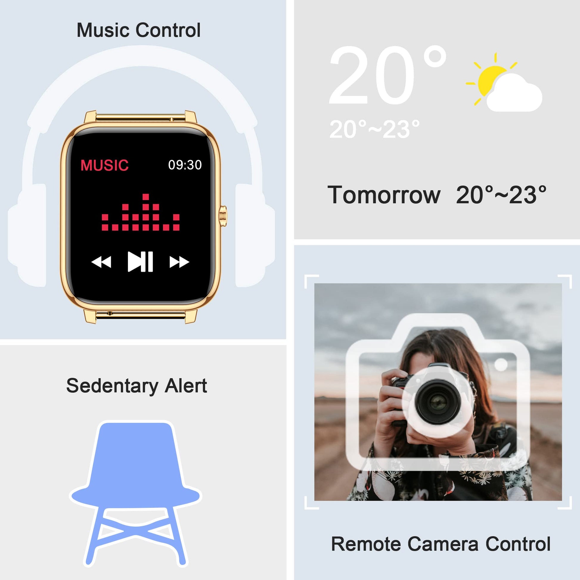 • Notifications and More Practical Features: All messages and notifications will show on your wrist and remind you through vibration. It cannot answer call or text on watch. There are also many convenient functions like Timer, Wake-up Gesture, Find Phone, Sedentary Reminder, Music Control and Weather Display