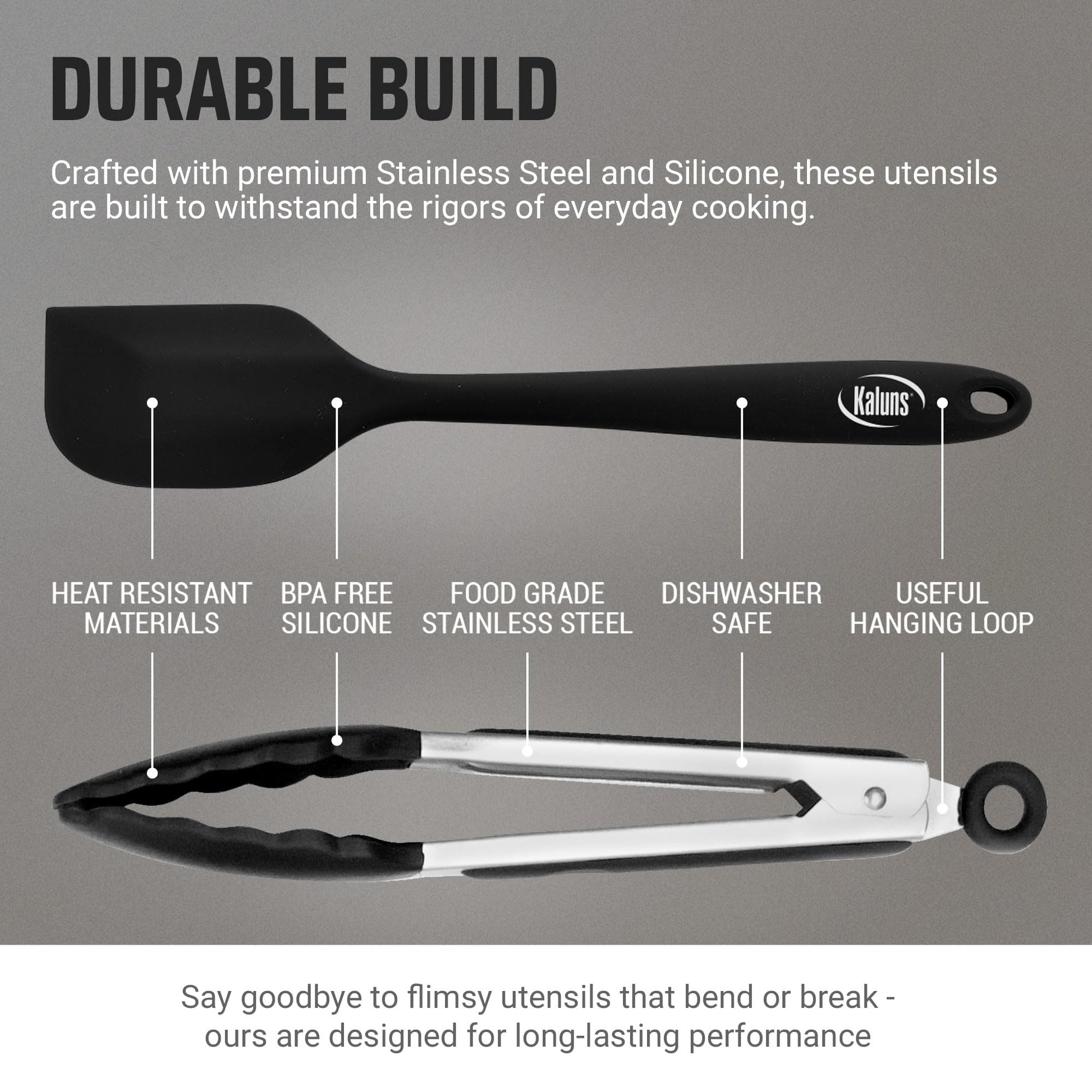 Kaluns Kitchen Tongs for Cooking Grilling Set of 4, BBQ Grill Tongs With Silicone Tip Stainless Steel Heat Resistant, Non-stick Pull Lock, Incl 7, 9, 12 Inch Tong Plus a Silicone Spatula