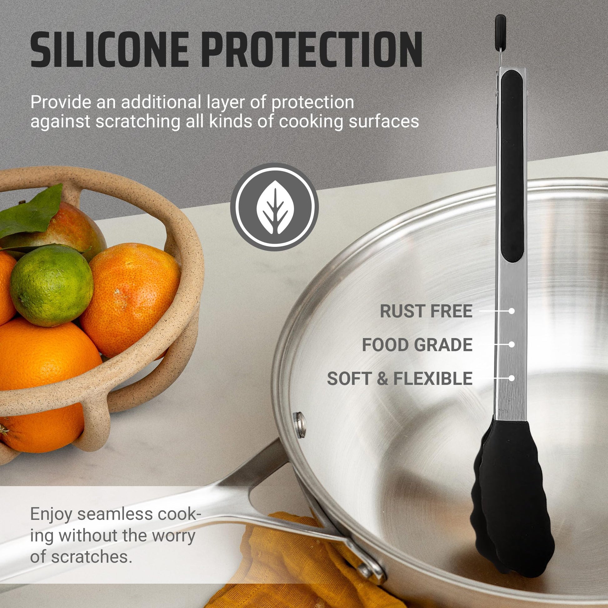 • High quality: No more worries about melting or rusty tongs. Our Stainless steel tongs is made of 1mm corrosion resistant 304 stainless steel - 464F/240C Heat-resistant, Dishwasher Safe and Non-stick High-Quality. BPA Free. The silicone edged tongs will not scratch your cookware, nor rust or flake into food.