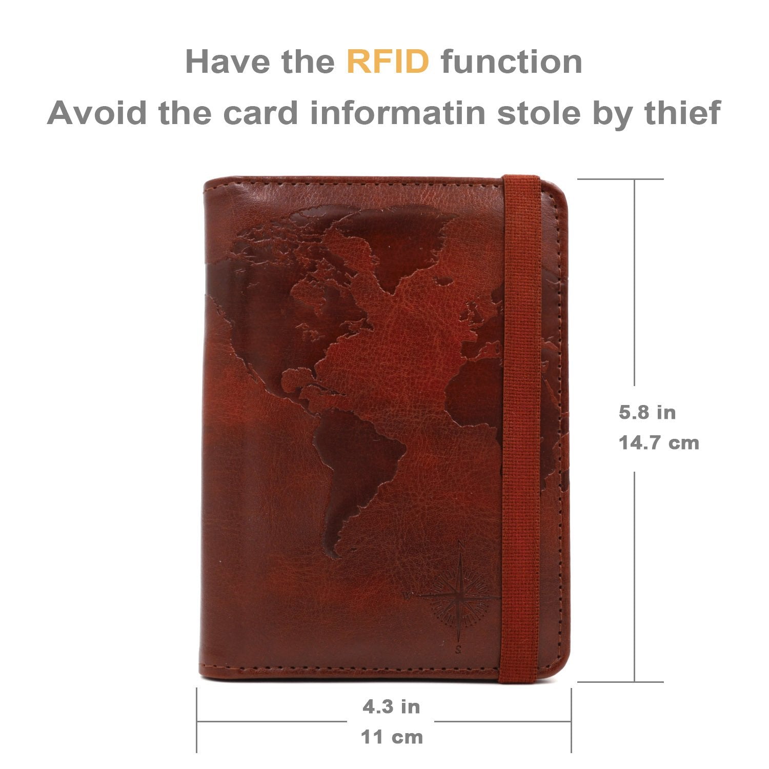 • RFID Blocking Hand Made Brown World Map Passport holder,make with high quality Crazy Horse PU leather,soft,slim,durable.