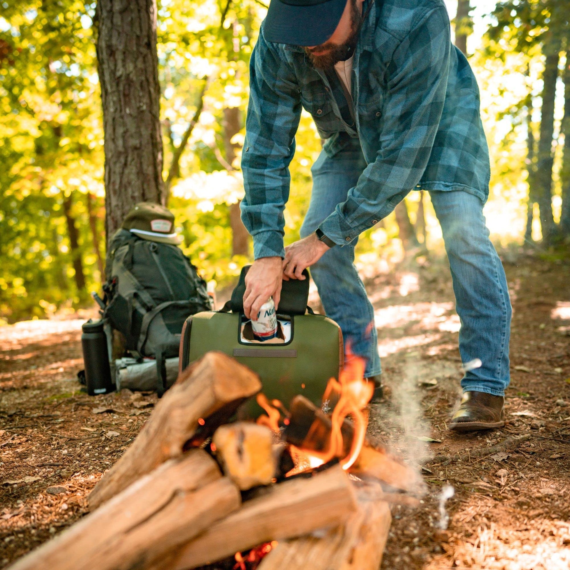 • 24 Pack Can Cooler - Holds a standard 24 pack case of 12 oz standard or slim cans or 2 stacked 12 pack cases of sodas arranged 2x6 standard cans. Whether you're enjoying a seltzer or your favorite beer, your kanga cooler is ensured to fit directly over the cold case.