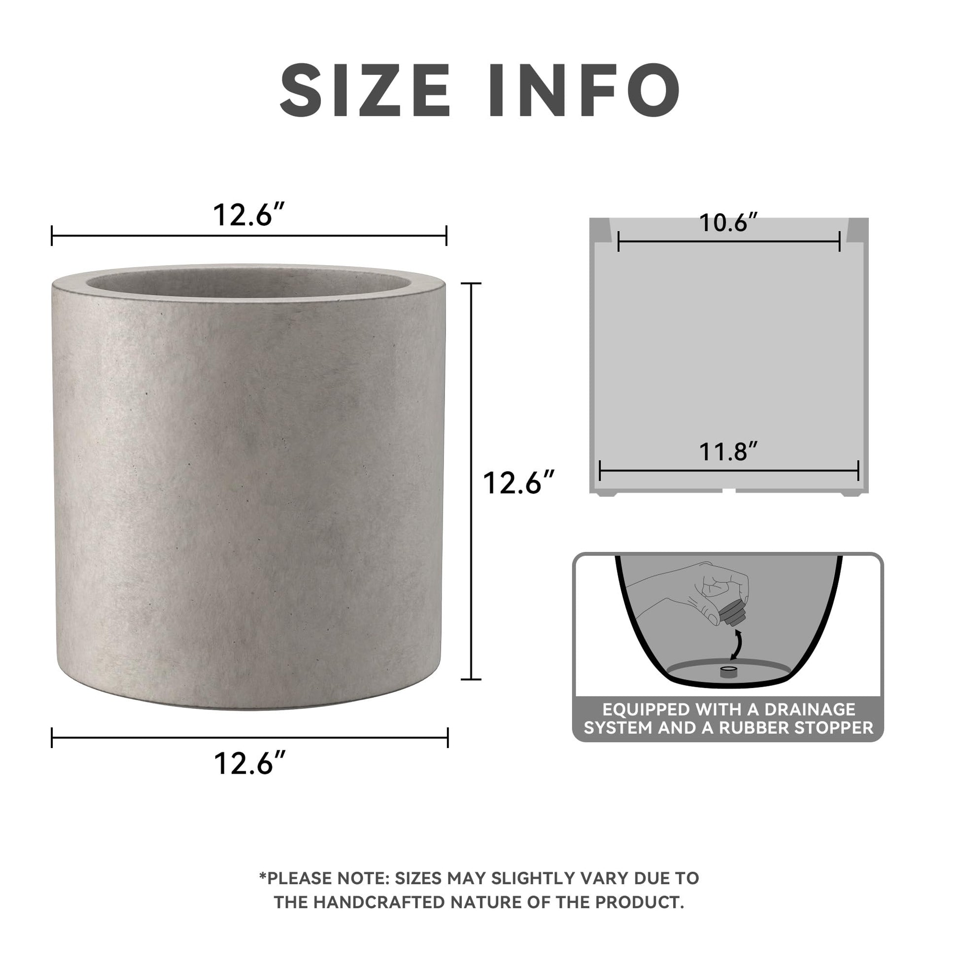 Kante 12.6" Dia Round Concrete Planter, Modern Style Large Cylindrical Plant Pot with Drainage Hole and Rubber Plug for Indoor Outdoor Patio, Weathered Concrete