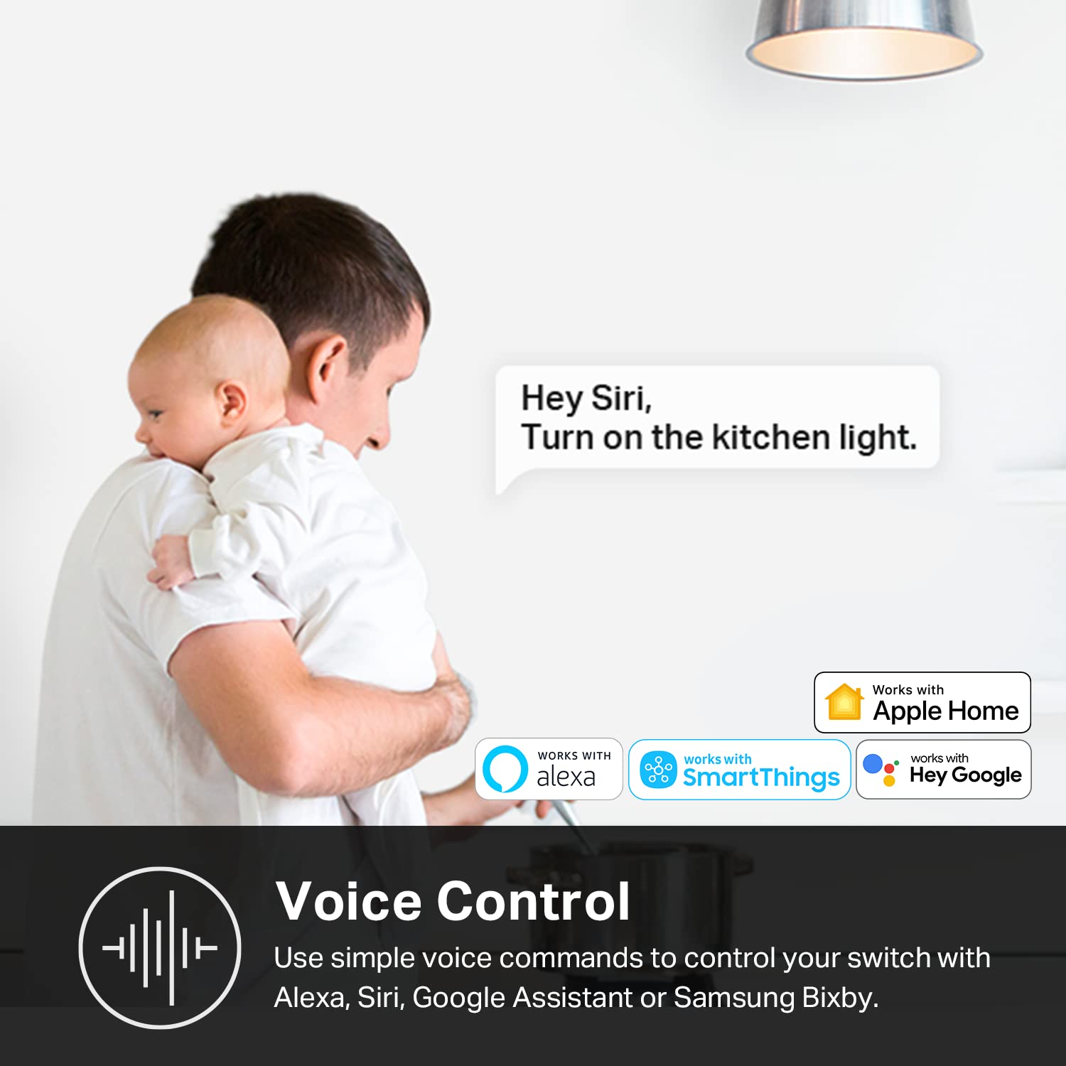 • 【Apple HomeKit Support】This Apple HomeKit compatible smart switch fully integrates into your Apple ecosystem, just ask Siri to turn on/off the lights in your home. (Apple HomeKit remote control requires an additional networked Apple device at home such as a HomePod or Apple TV.)