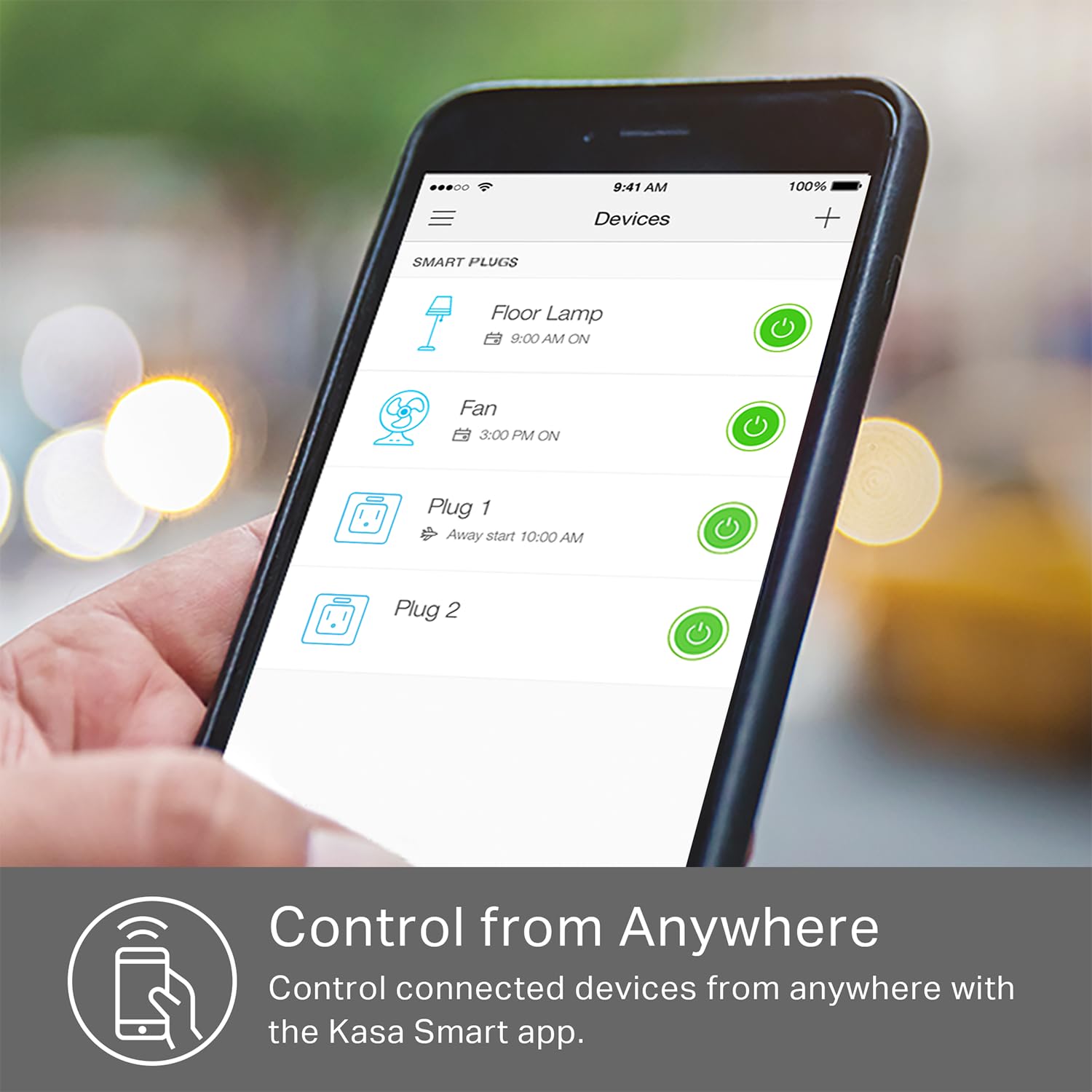 • Control from anywhere: Turn your in wall outlet on or off, set schedules or scenes from anywhere with your smartphone using the Kasa smart app; Remotely turn your holiday lights on while you’re at the office or away from home