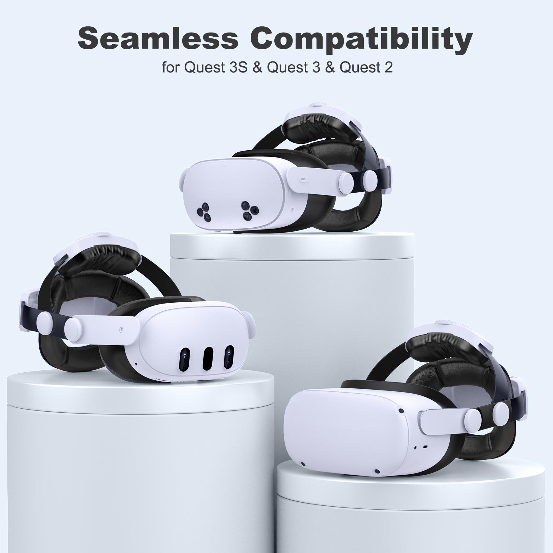 • 【Universal Fit for Meta Quest 3S/3/2 】Kawaye head strap compatible with Meta Quest 3/Quest 3S/Oculus Quest 2 vr headset, enjoy the same adjustable comfort across all. We Included:1× Comfort Head Strap | 1× for Quest 3S/3 Fasteners | 1× for Quest 2 Fasteners | 1× Cleaning Cloth | 24/7 Support.