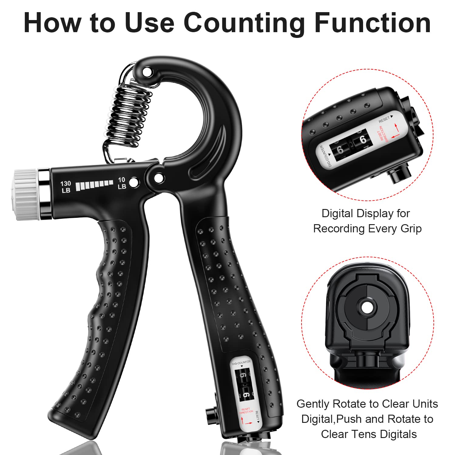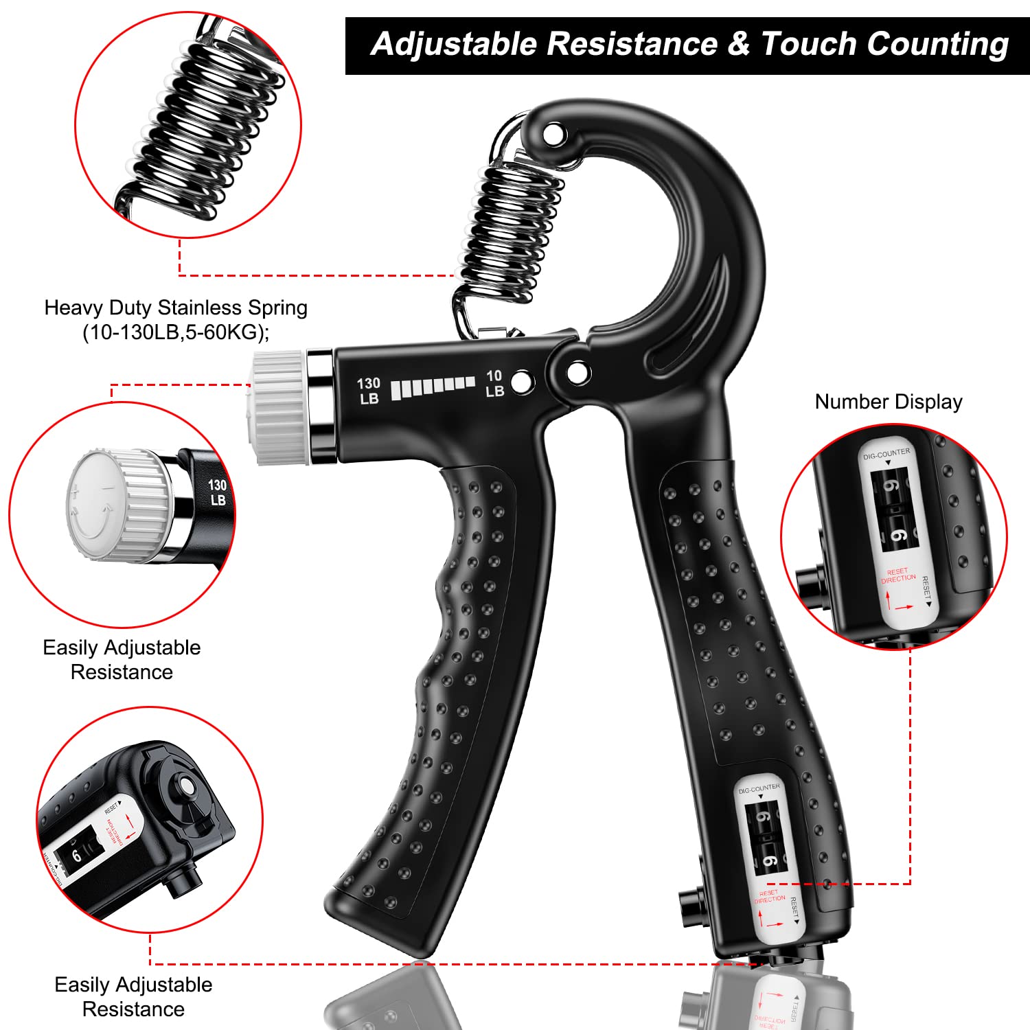• 【Easy-Adjustable Resistance】Easy to adjust the resistance from 10-130lbs as needs. The hand Gripper is suitable for everyone, such as athletes, sports enthusiasts, fitness coaches, musicians, etc. and people who want to exercise their hand, wrist and fingers.