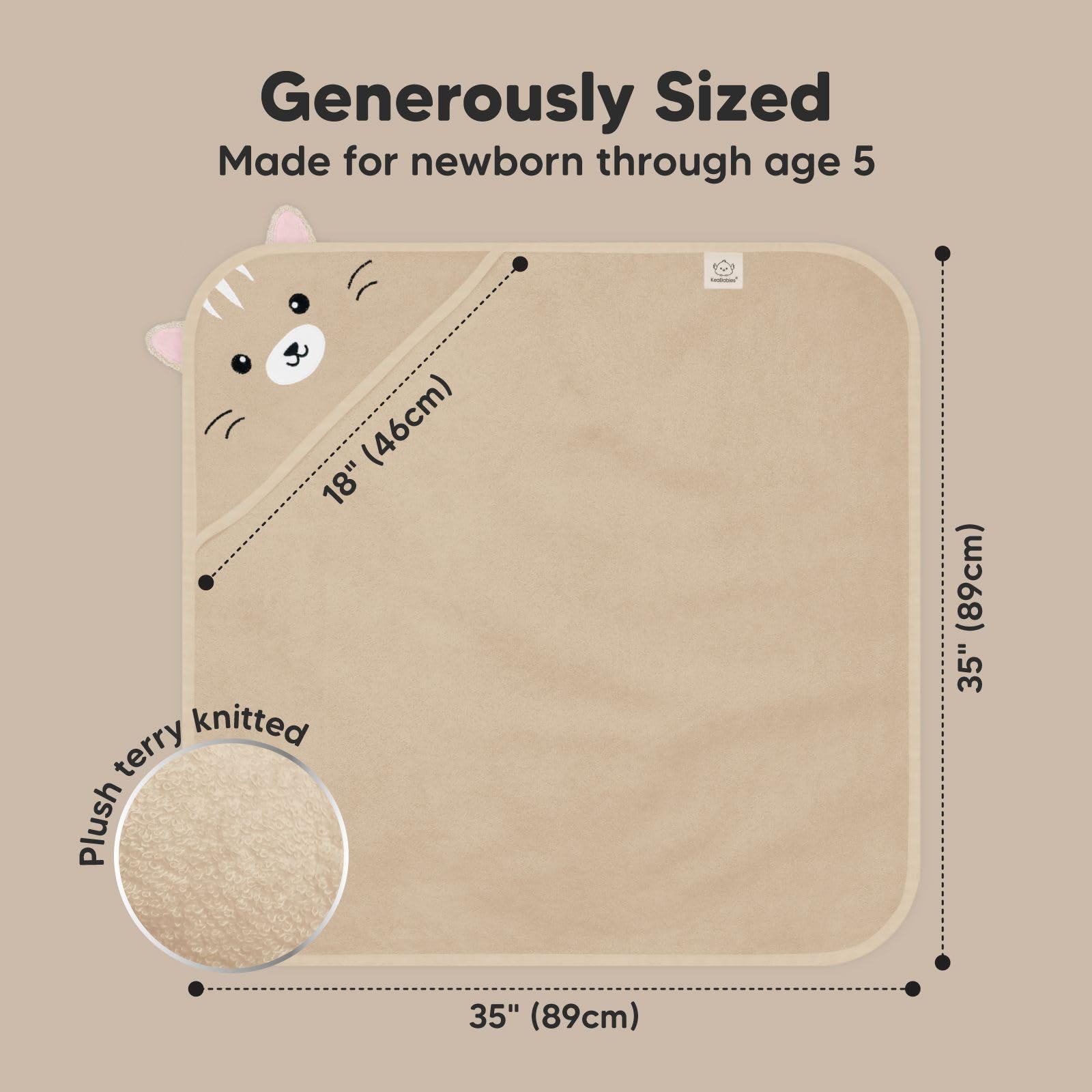 • Large and Durable Hooded Baby Bath Towels – Measuring 35" x 35", KeaBabies Hooded Baby Towels for newborn are built to be long-lasting even with repeated washes. The soft baby hooded towel can be use as your newborn grows into a toddler and up to age 5.