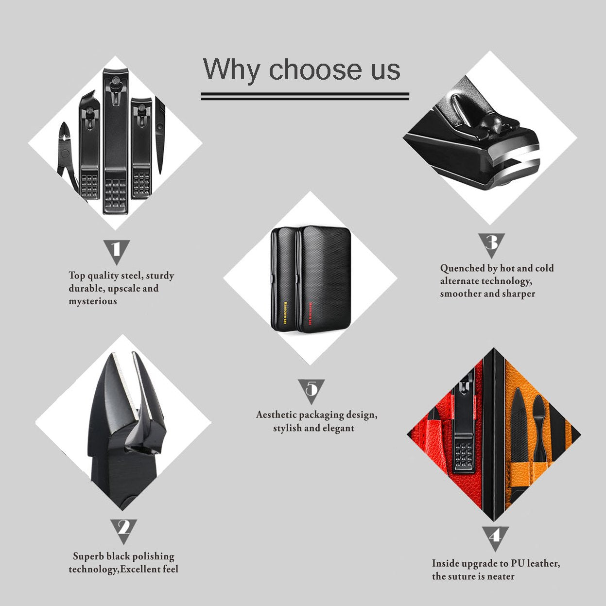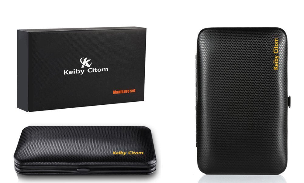 Keiby Citom Professional Stainless Steel Nail Clipper Travel & Grooming Kit Nail Tools Manicure & Pedicure Set of 15pcs with Luxurious Case (Black/Yellow)