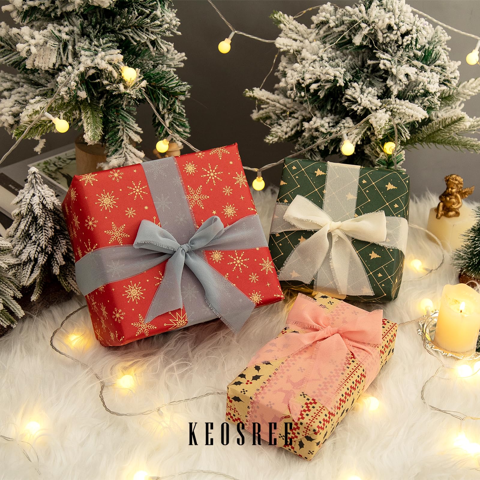 • 【PREMIUM MATERIAL】KEOSREE Chiffon Silk Ribbon is made of polyester, smooth and soft touch, as light as silk. You can easily cut to make your decoration more advanced and exquisite.