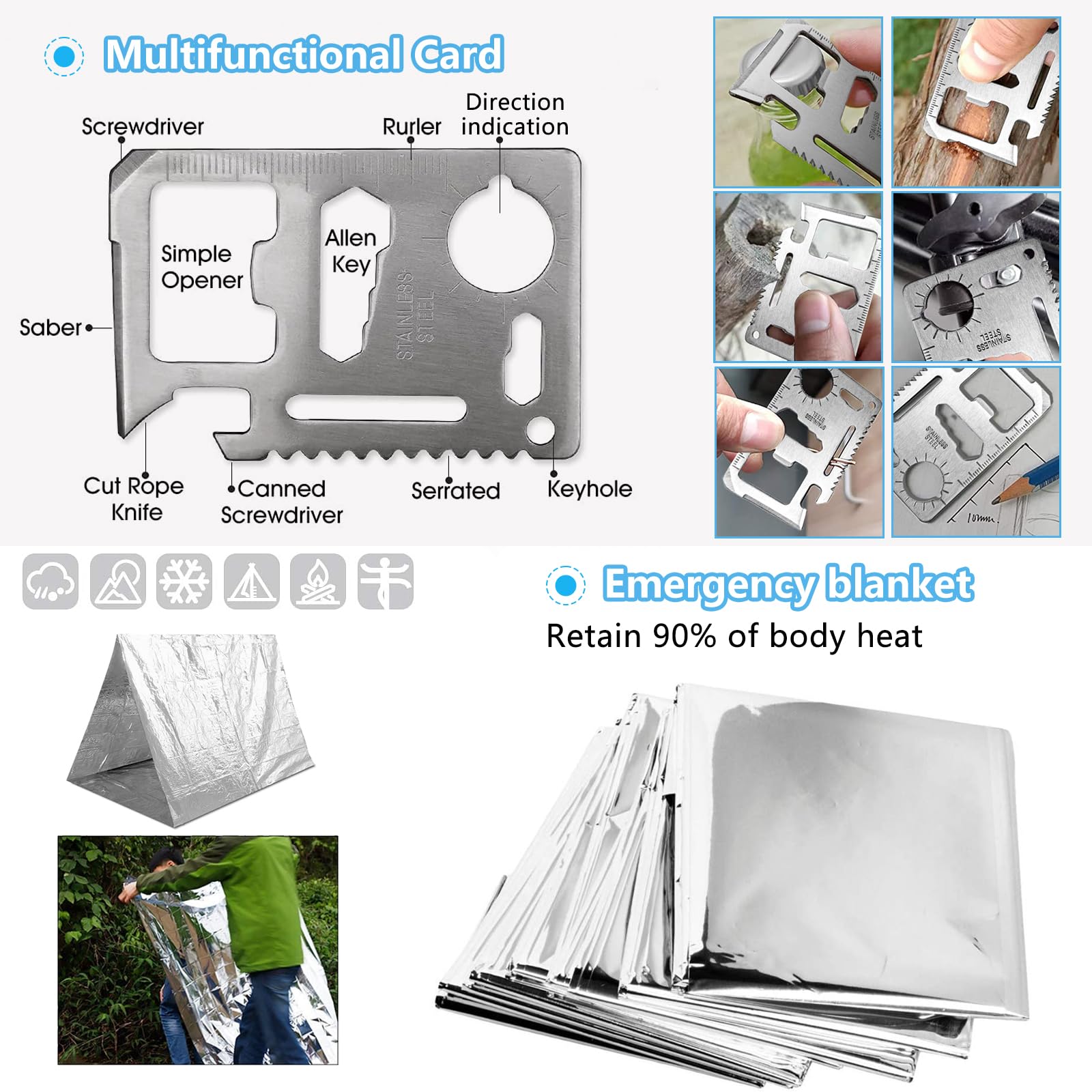 • 【Preparation Tools for Any Emergency】 This emergency survival kit can keep you safe and at ease in case of any emergency, which is ideal for hiking, wilderness survival, earthquake, outdoor adventure, hiking, and outdoor camping. It's better to be over-prepared than under-prepared!