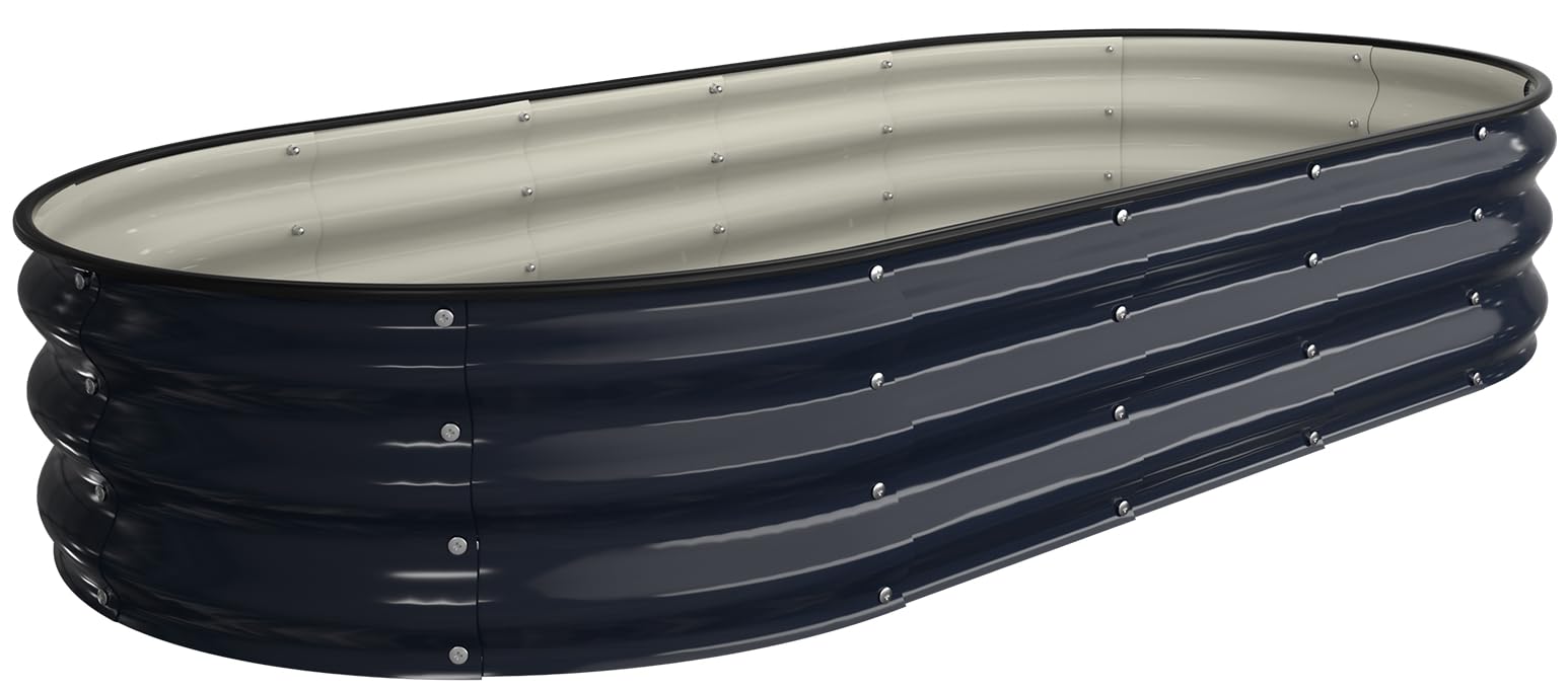• Double Thickness Super Stability: The thickness of the planter box is 0.6 mm, and the thickest overlap of galvanized sheets can reach 1.2 mm.Adding screw fastening edge at the interface. Oval shape that won't deform allows it to hold a large amount of soil.