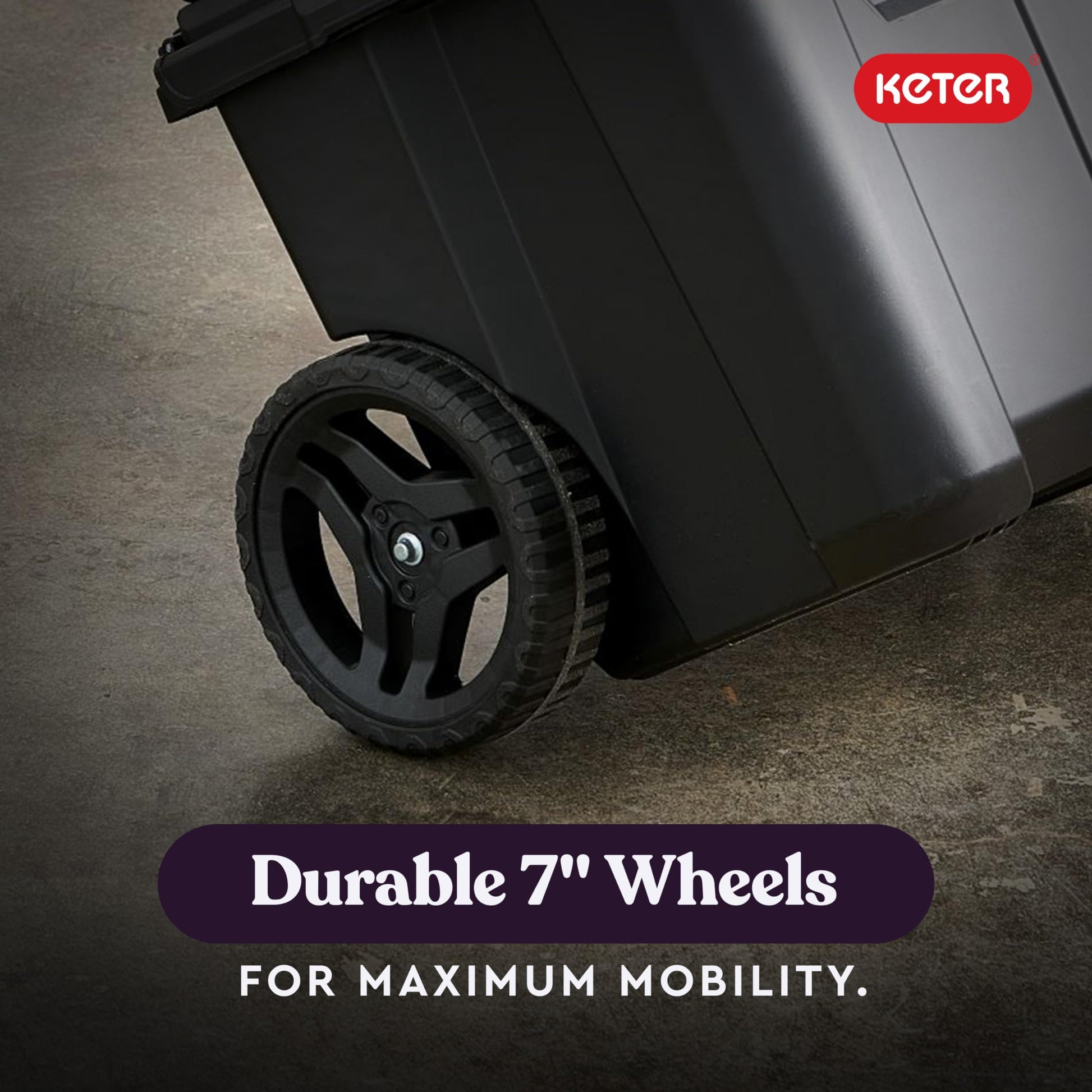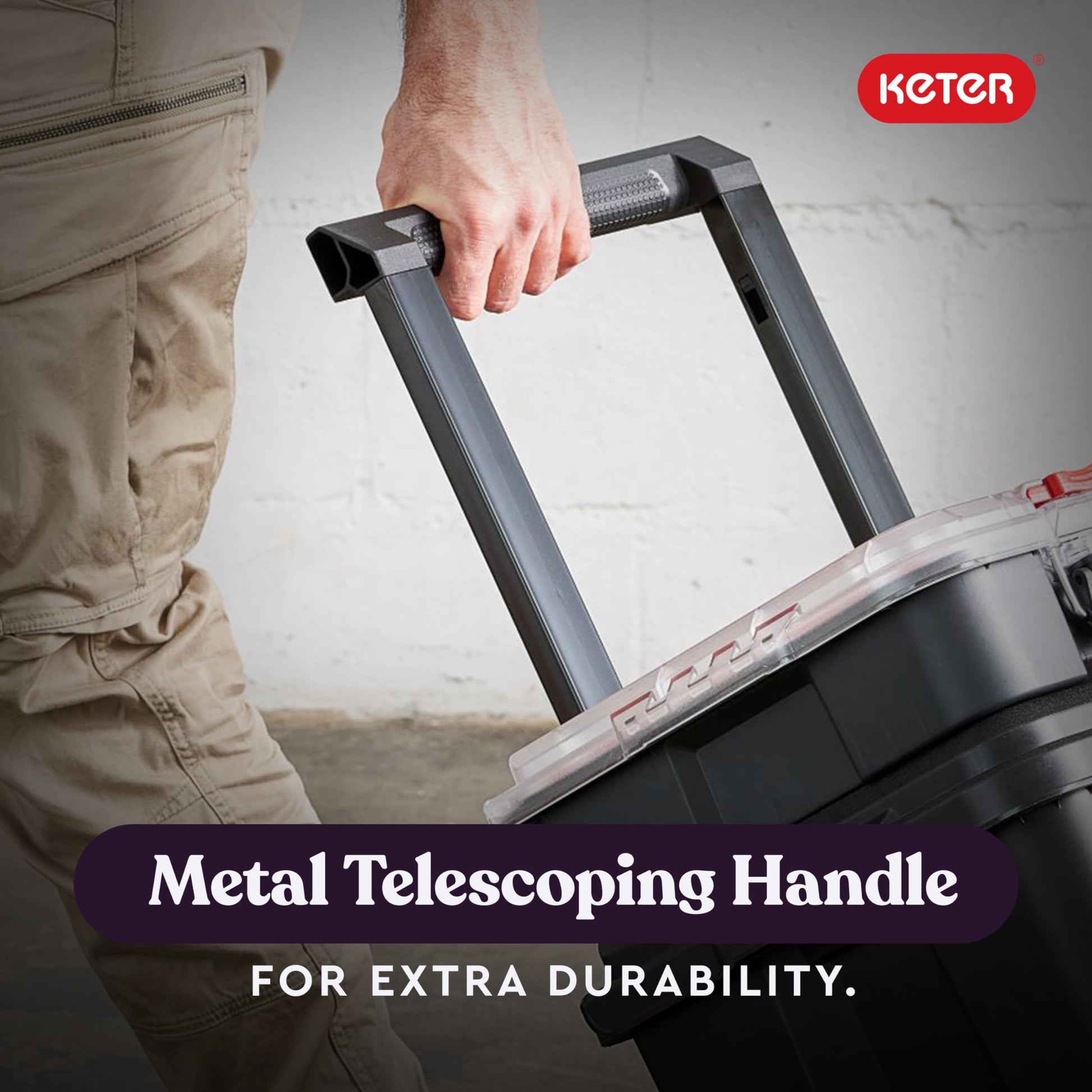 Keter Stack-n-Roll Modular Tools Organizer for Garage Storage and DIY, 3 Piece Resin Rolling Tool Box System for Small Parts, Black