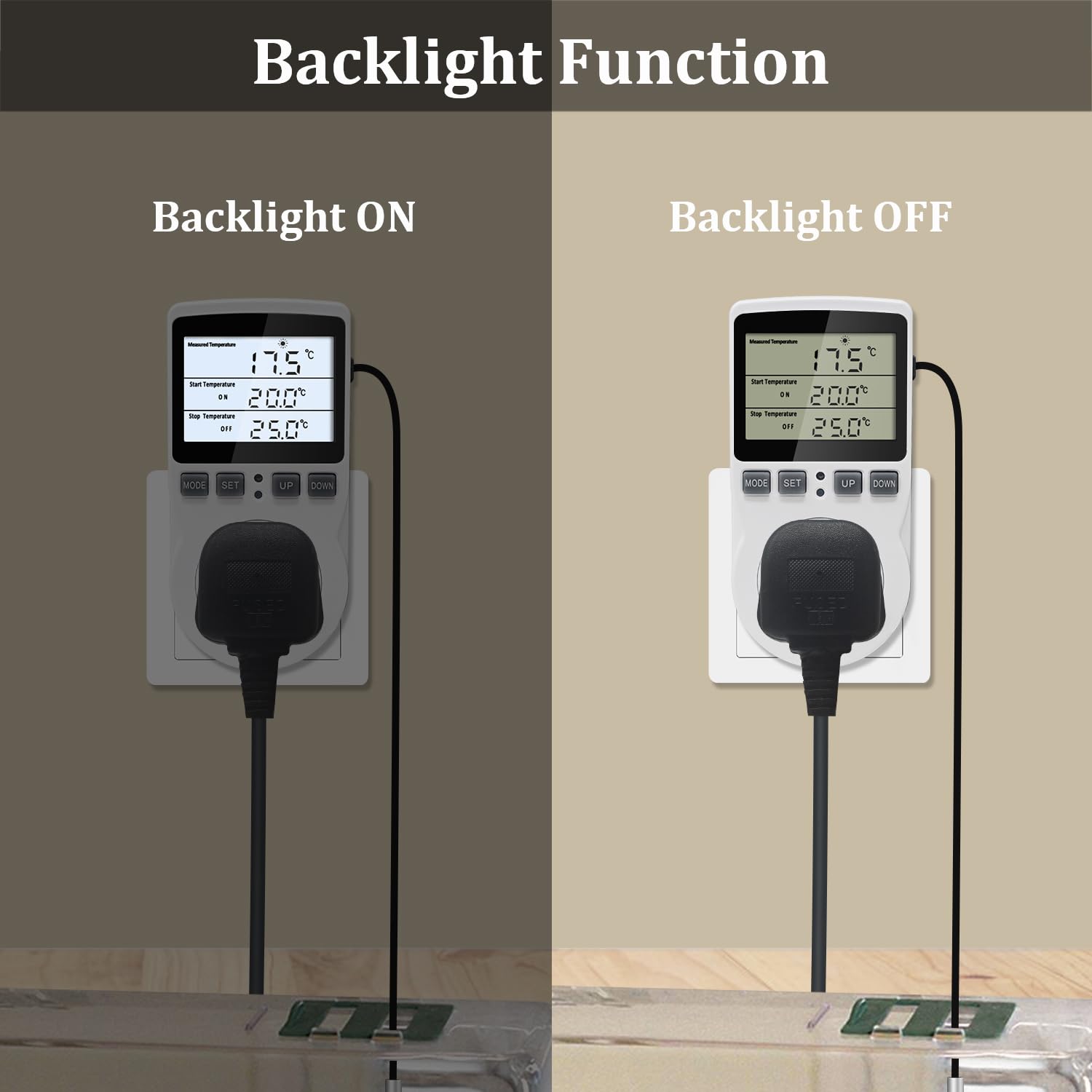 • Safe and reliable design - Made in fire-resistant and durable materials for long-term stable operation, this thermostat plug outlet uses a 3-meter high-precision NTC 10K temperature sensor to monitor temperature in real-time, ensuring accurate and precise temperature control. Your settings are safely saved even during a power outage, no need to set again after power restoration.