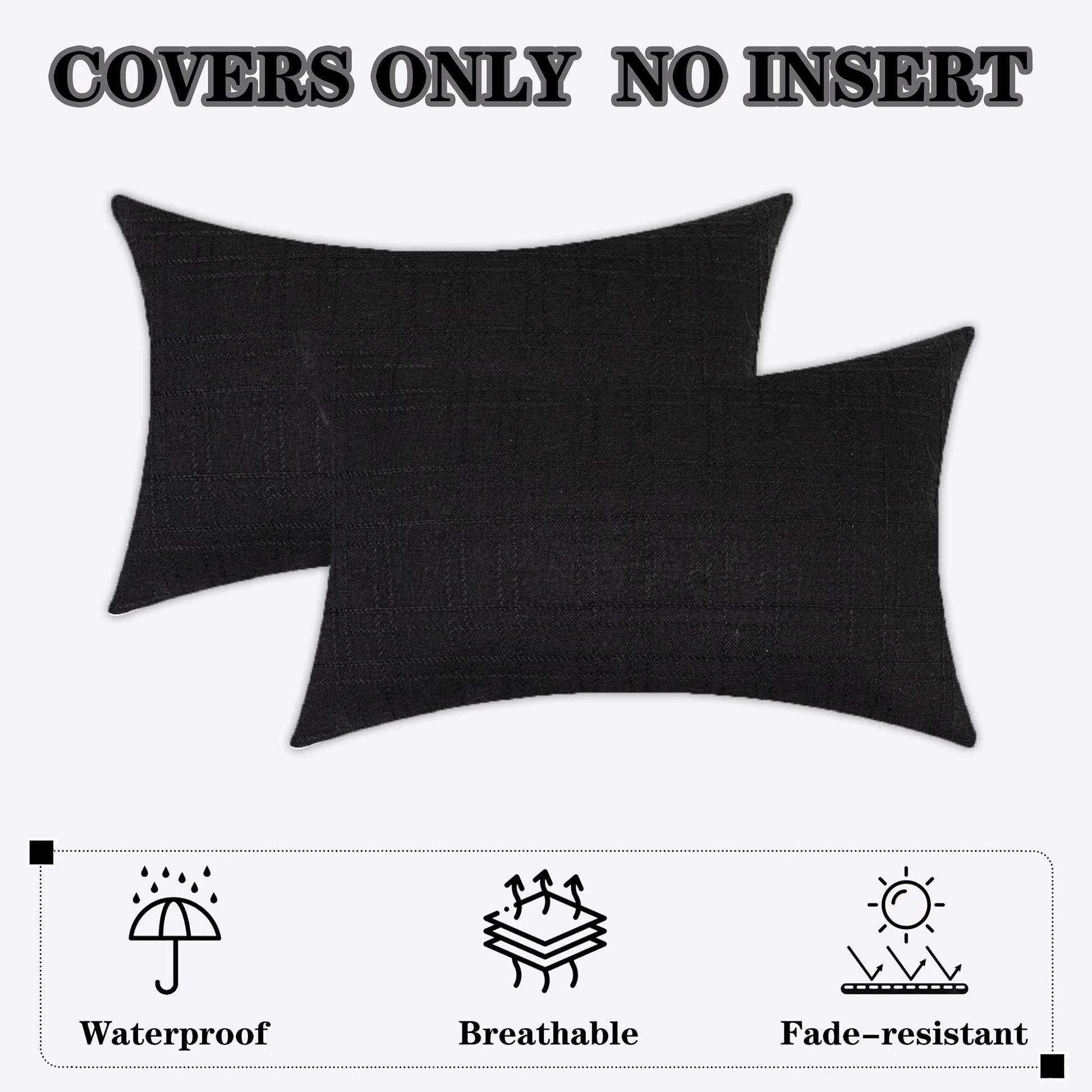 Kevin Textile Pack of 2 Decorative Outdoor Waterproof Throw Pillow Covers Checkered Lumbar Pillowcases Classic Cushion Cases for Patio Couch Bench 12 x 20 Inch Black