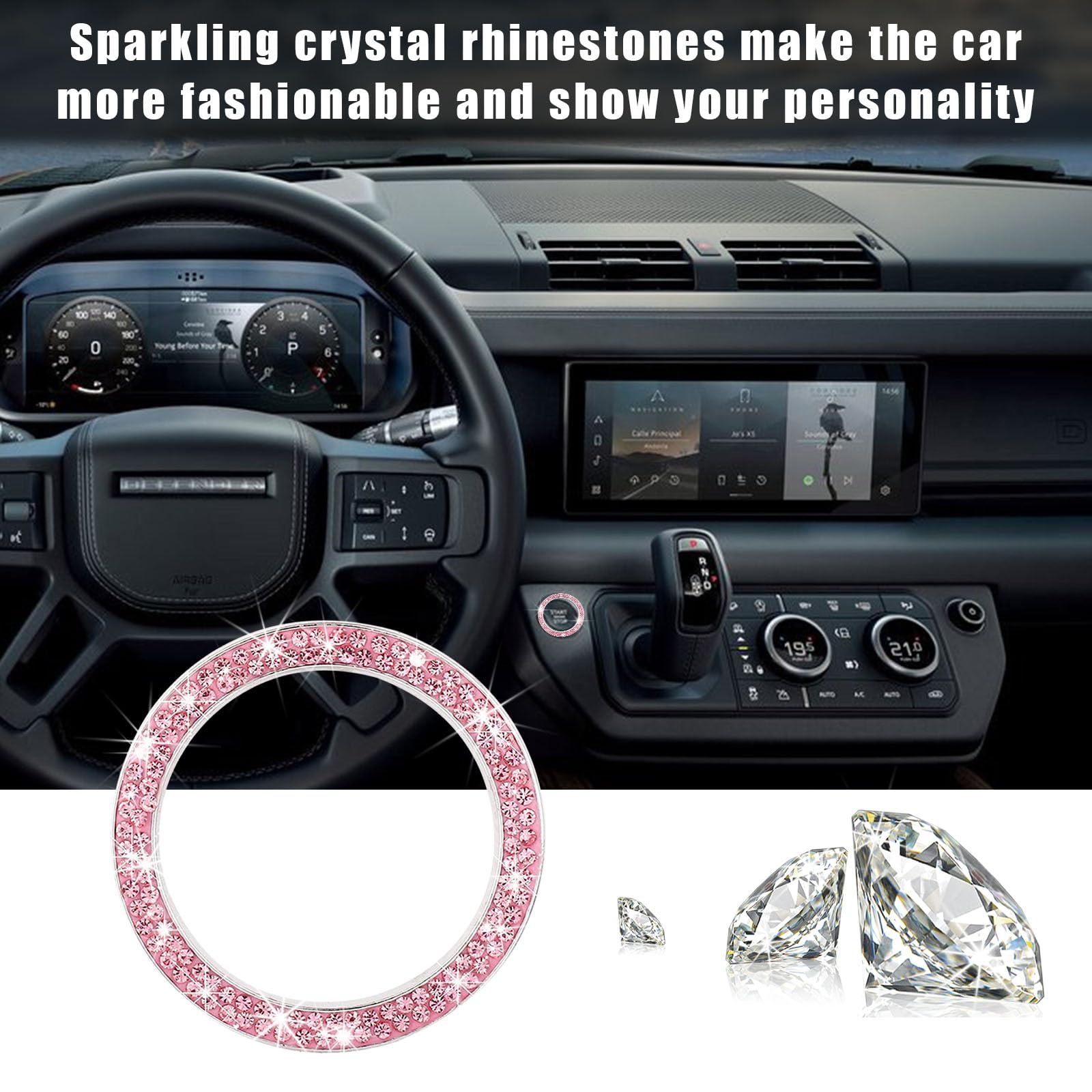 Kewucn Bling Crystal Double Rhinestone Car Engine Start Decoration Ring, Sparkling Push Start Button Sticker, Key Ignition & Knob Ring Decoration, Bling Car Interior Accessory(Pink)