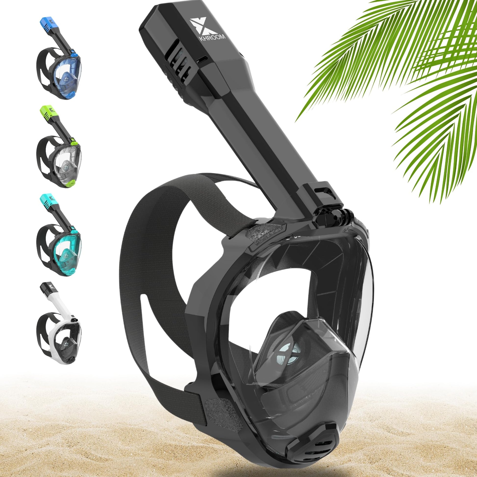 Khroom Full Face Snorkel Mask for Adults | New Valve Tech for Easy Breathing | 3X Larger Air Intake | Leak-Proof & Anti-Fog | Premium Snorkel Gear | Scuba Mask with Action Cam Mount (L/XL, Black)