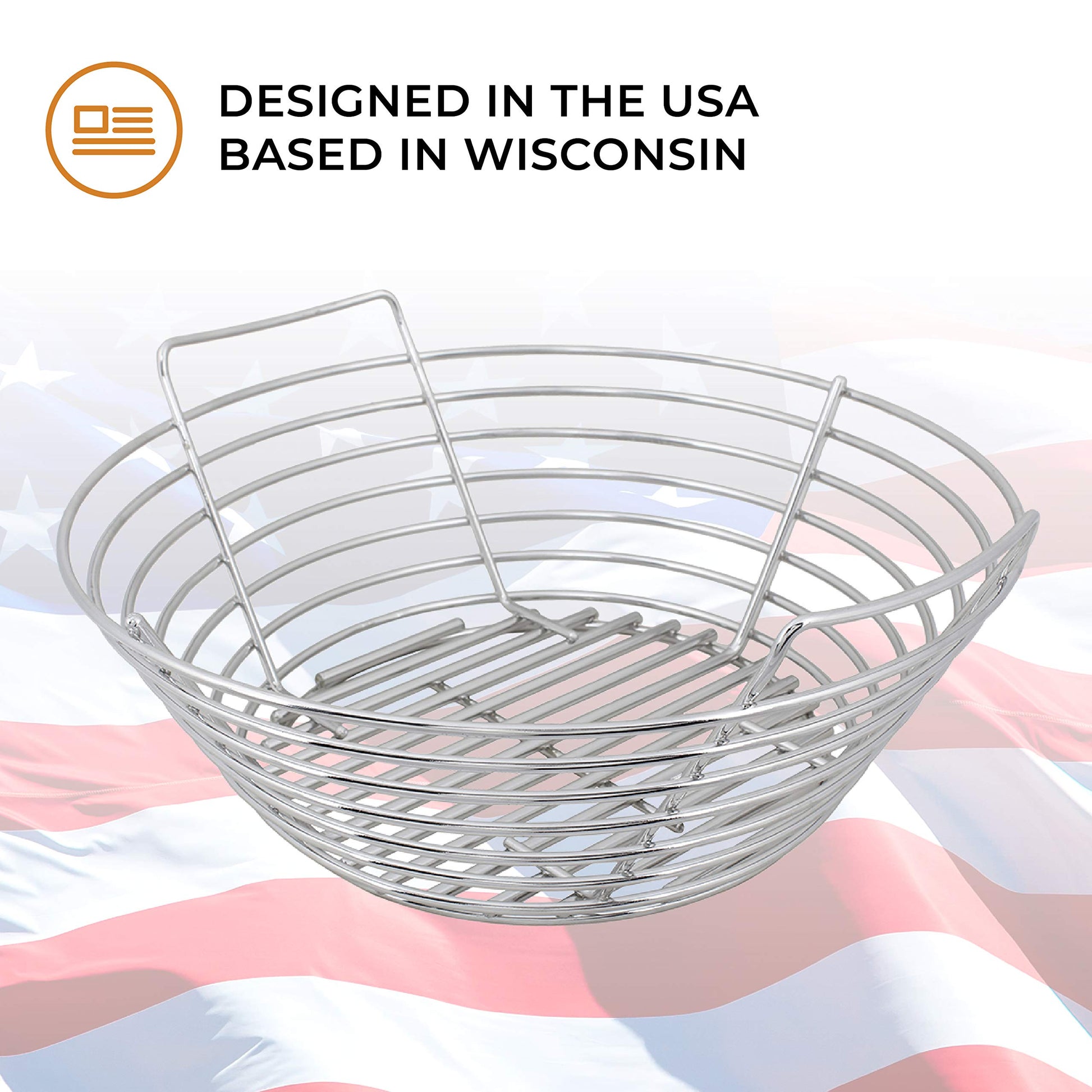 Kick Ash Basket Stainless Steel Charcoal Ash Basket, Fits Big Green Egg Grill, Large - Designed in Wisconsin