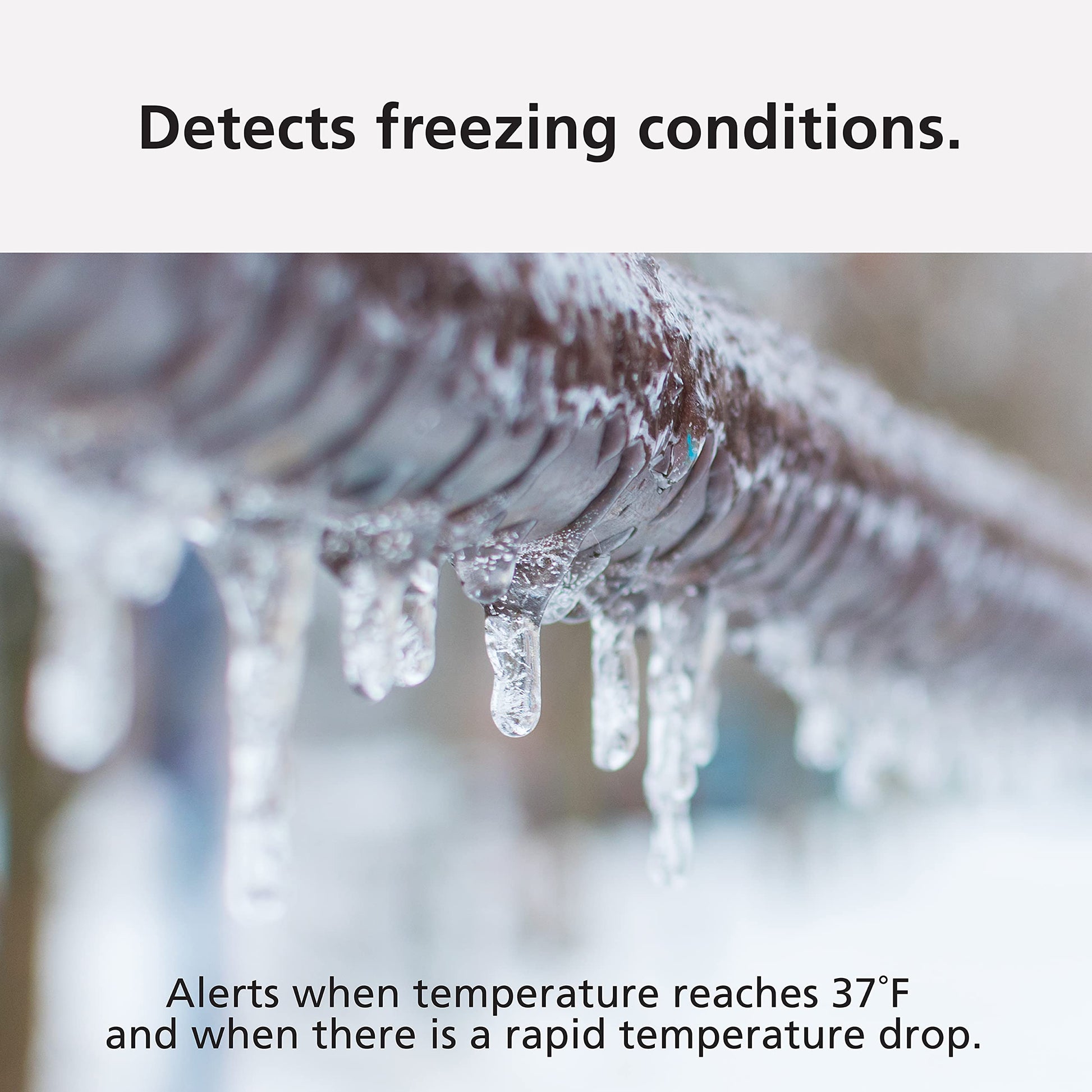Detects freezing conditions when temperature reach 37 degrees Fahrenheit or when there is a rapid temperature drop