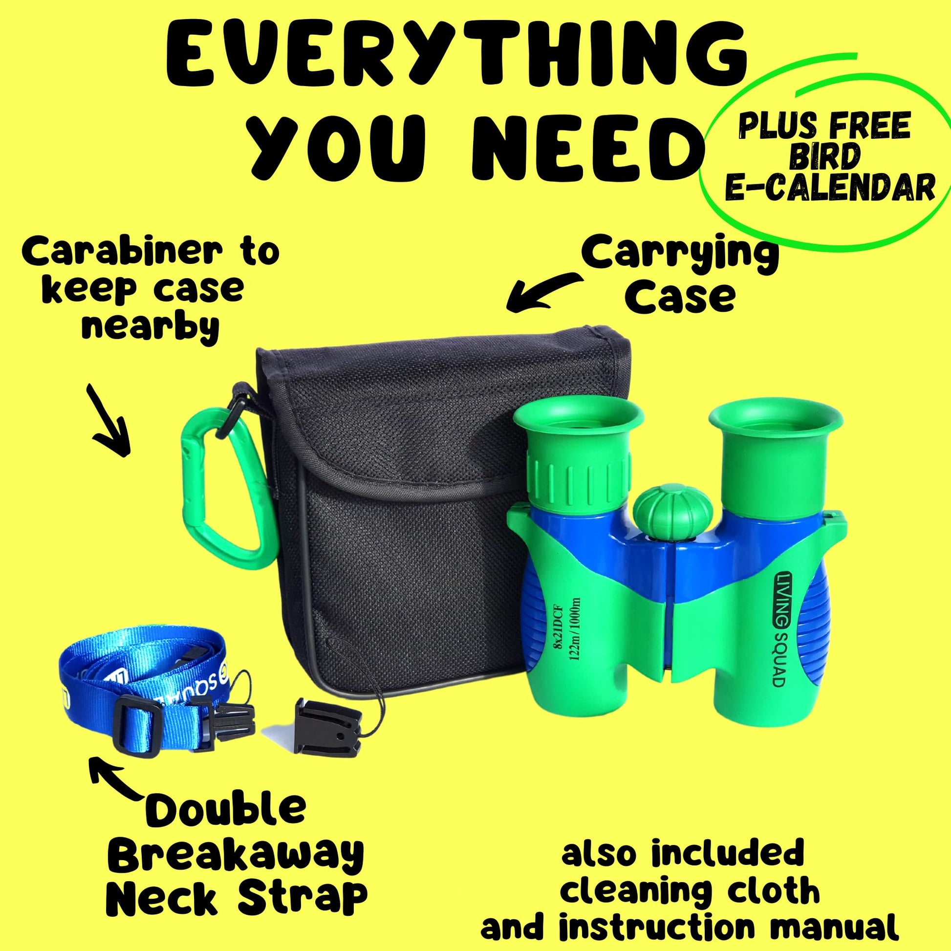Kids Binoculars 8x21- Kids Gift Aged 3-12, Shock Proof Compact Binoculars for Child Set- Neck Strap, Compass, Carabiner, Case- High-Resolution Optics Boy & Girl Gift Toy for Bird Watching, Camping