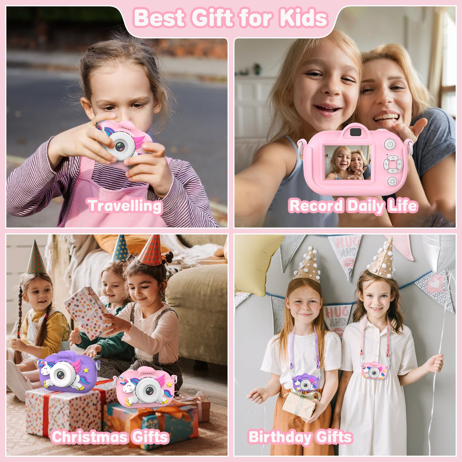 • Best Toddler Camera Gifts Toys for Kids Girls Boys Aged 3-12: Do you still annoy with which presents your kids will prefer, Please don't worry, our cute kids camera gifts toys packaged in an exquisite gift box, really will be a perfect gift choice on Christmas Day, Children's Day, Halloween, Birthday, or New Year's Day, allowing your kids to record their happy moments on important moments or special festivals. Our kids camera will act as a good partner for kids daily life or holiday travel