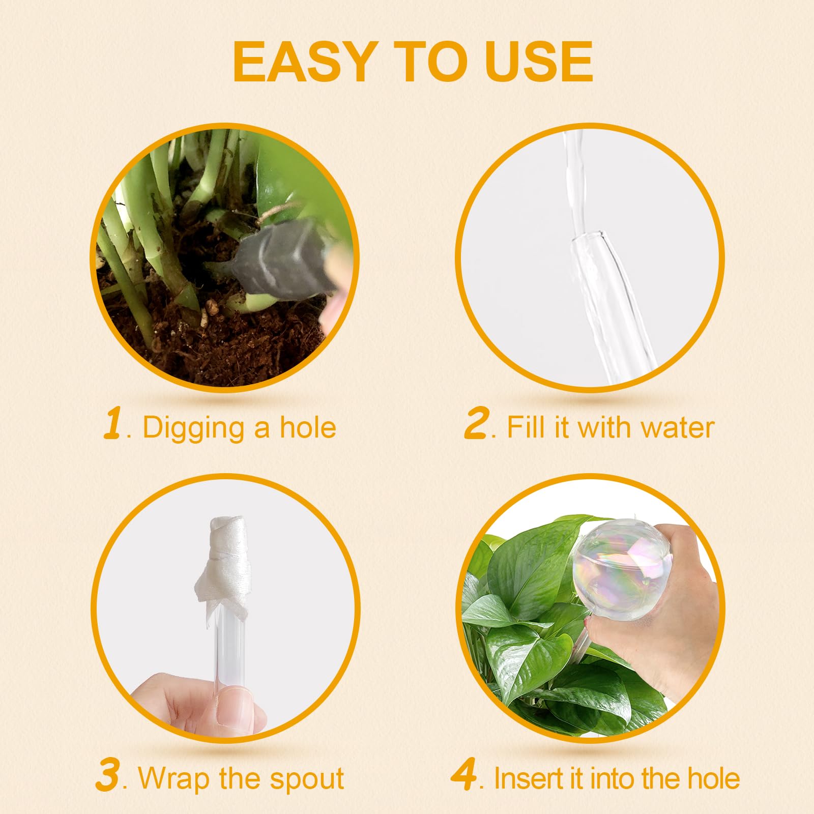 • 🌵【Easy to Use 】Just dig a small hole in the soil and fill the plant self watering globes about 95% with water, then insert the water bulbs for outdoor plants into the soil. plant watering devices usually keep plants hydrated for 3-7 days, up to 2-3 weeks