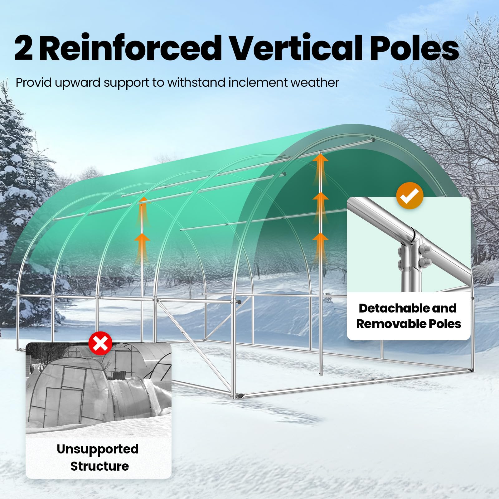 • [Temperature & Humidity Management]--Featuring 8 roll-up screen windows plus 2 door-netting, it facilitates temperature and humidity control. It increases temperature promoting early spring plant growth, enhances ventilation on hot summer days, and retains warmth during the winter. It keeps plants from pouring rain, winds, and snow.