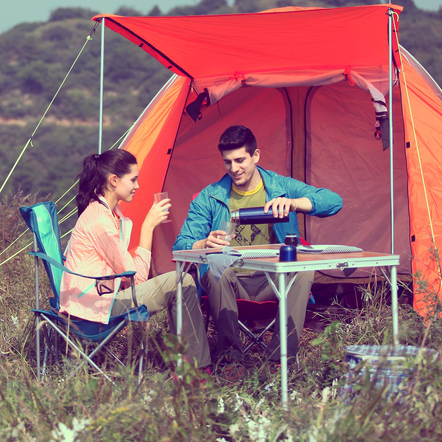 • Strong Yet Lightweight - Weighing just 6.5 lbs, this camp table is easy to carry but incredibly sturdy. Reinforced with a triangular hinge structure, aluminum legs, and non-slip foot caps, it handles up to 66 lbs with ease. A true camping table that folds up lightweight without compromising strength.