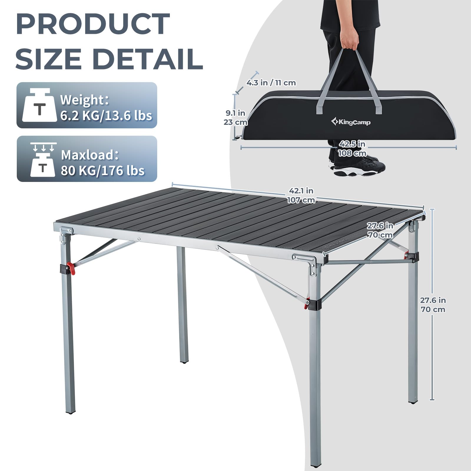 KingCamp Aluminum Folding Lightweight Roll Portable Stable Table for Camping Picnic Barbecue Backyard Party, Indoor & Outdoor, Oversize, Silver Black