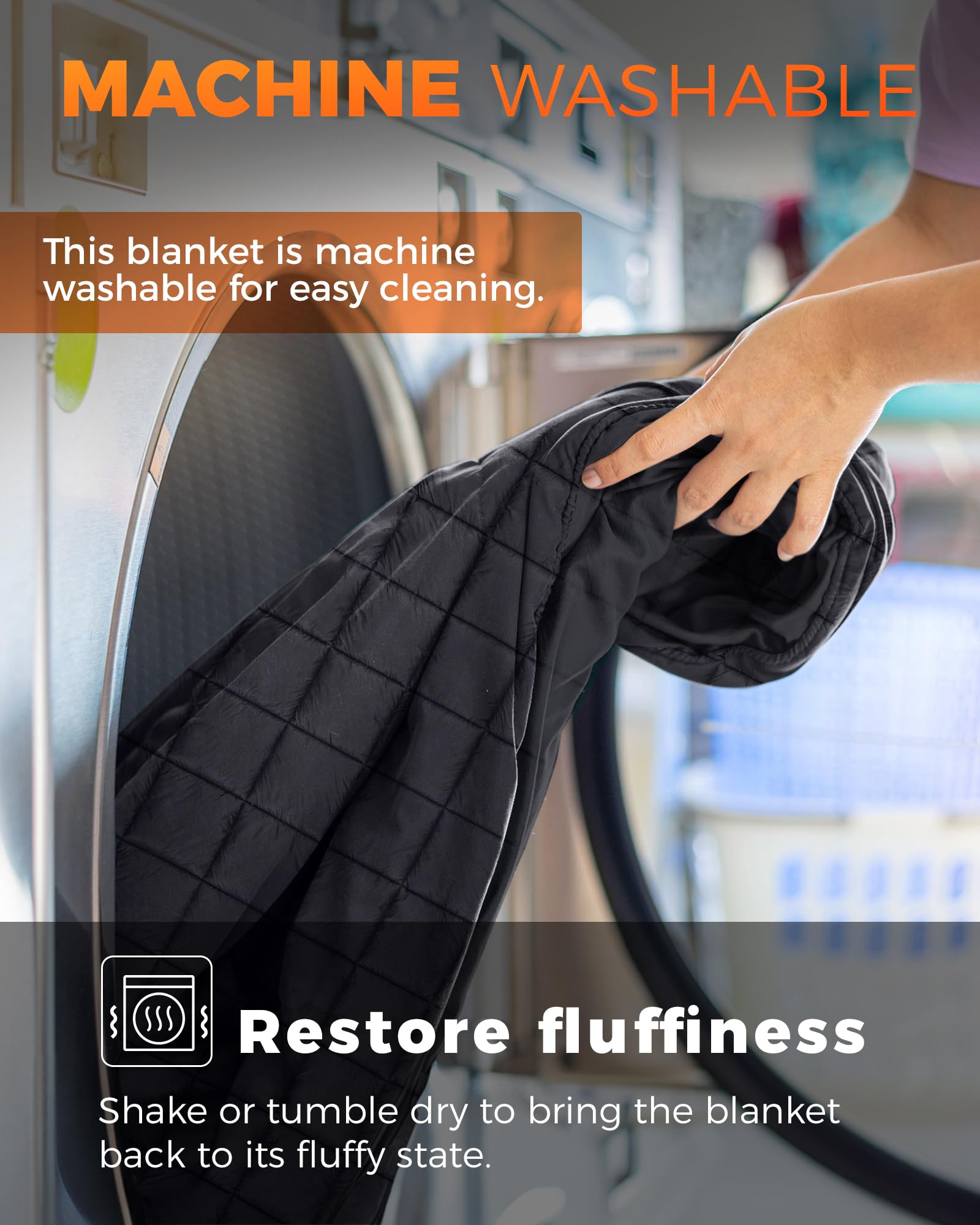 • COZY WARM LOFT FILL WITH DURABLE 20D NYLON SHELL FOR ALL-WEATHER WARMTH: Filled with 150G/㎡ of hypoallergenic Warm Loft fiberfill, this camping blanket provides warmth and softness similar to natural down, without allergens or animal materials. The tightly woven 20D nylon shell is water-resistant and windproof, and helps trap body heat and block cold air—enhancing insulation to keep you warm and comfortable at campsites, beaches, or mountain cabins.