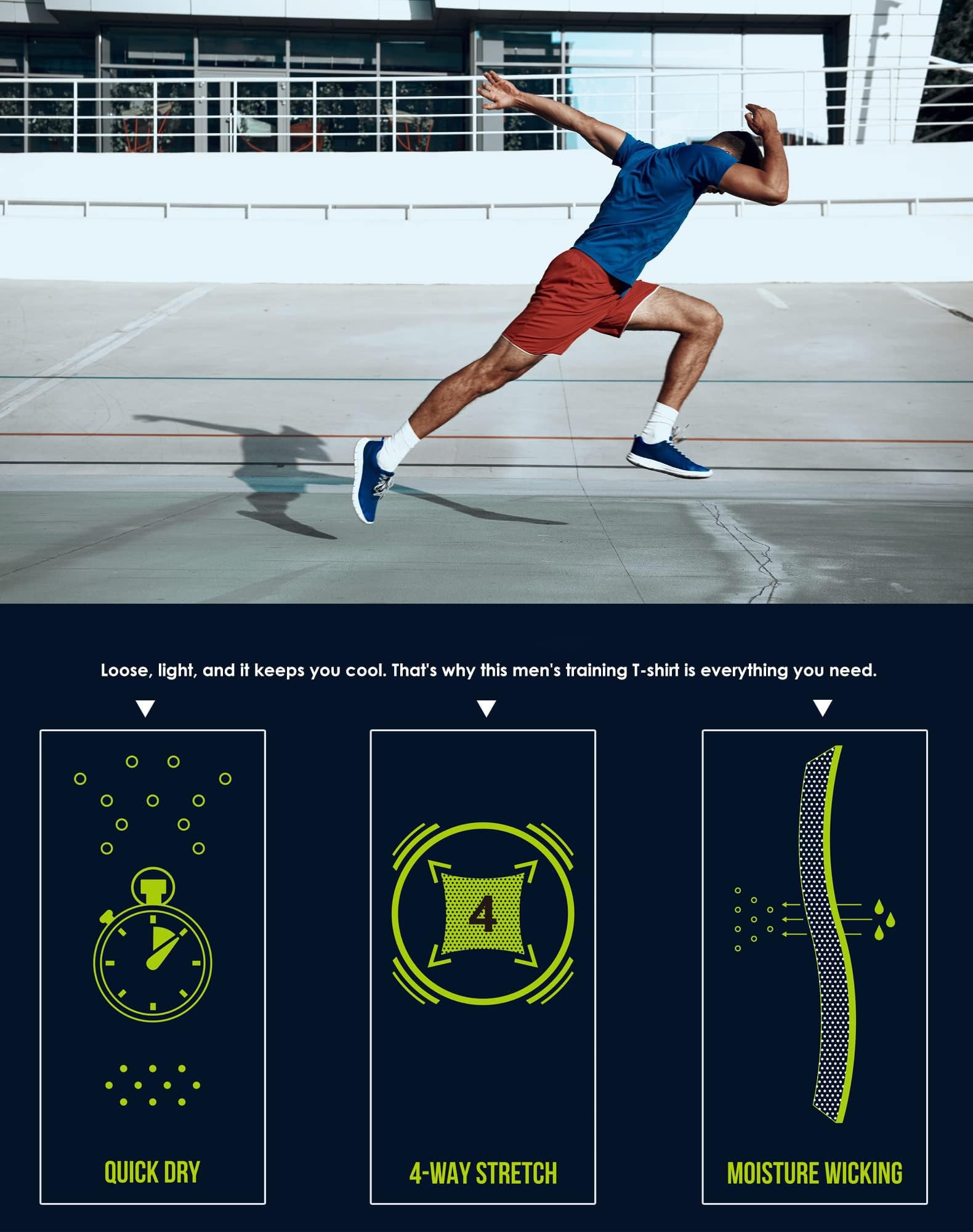 • 【Moisture Wicking】- Dry fit t-shirts with quick drying properties to help you get rid of the sweat during exercise and keep dry all the time.