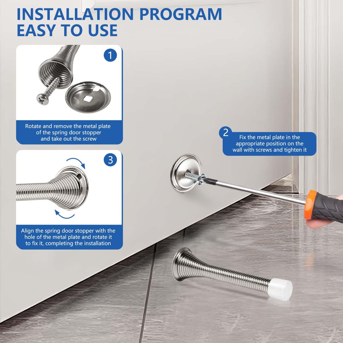 • Easy to Install: Doorstop is extremely easy to install within 1 minute. The door stop spring is 3 ? inches and comes with mounting screws and bases. All you need is a screwdriver or driller. So simple that even adolescents can finish by themselves. Start a funny DIY door stopper decorative installation. Keep those damage and repair bills away with KISEER higher quality door stoppers.