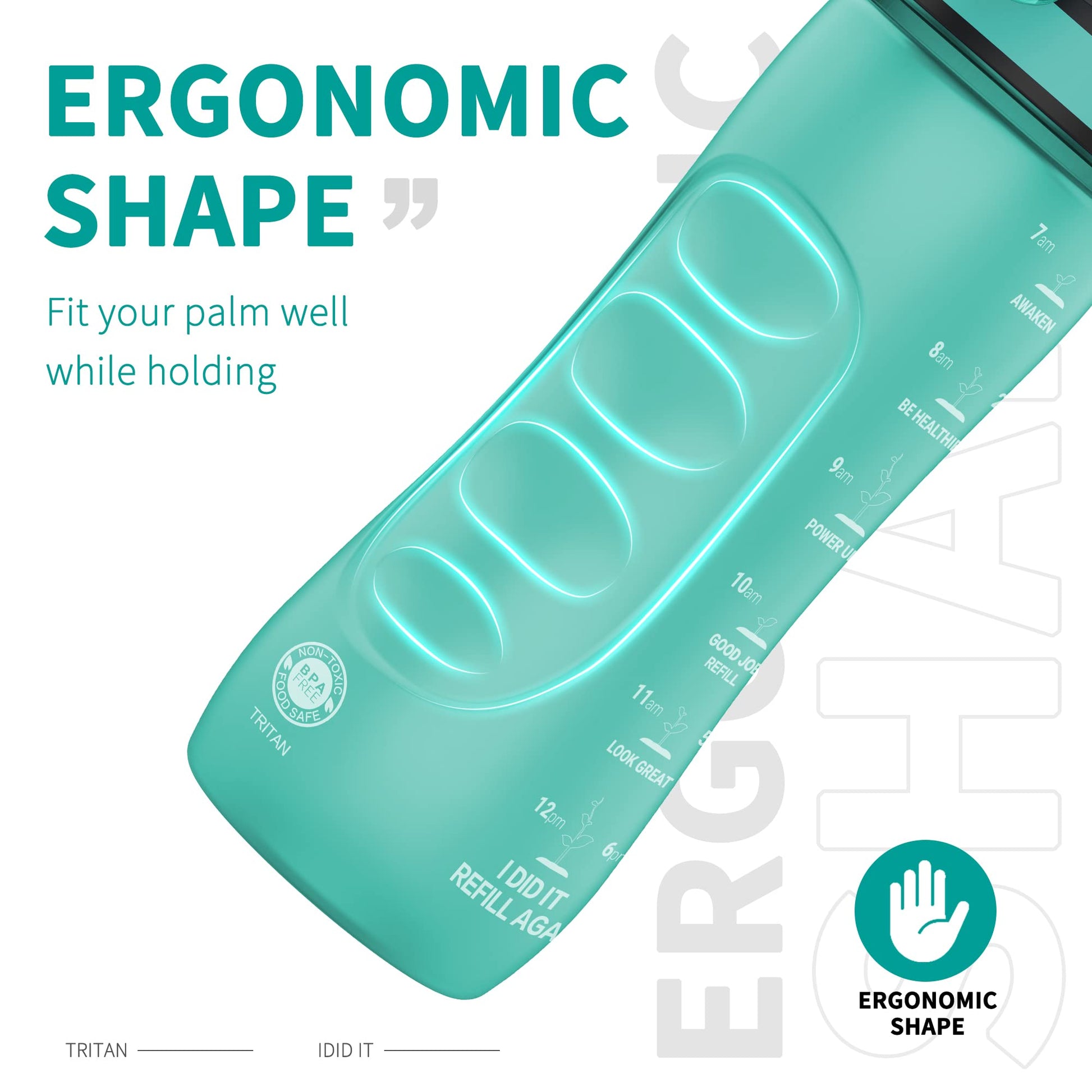 • UNIQUE ANTI-SKID ERGONOMIC SHAPE - The Kitart motivational water bottle is not a straight bottle, instead it has a finger contour for easy grip.