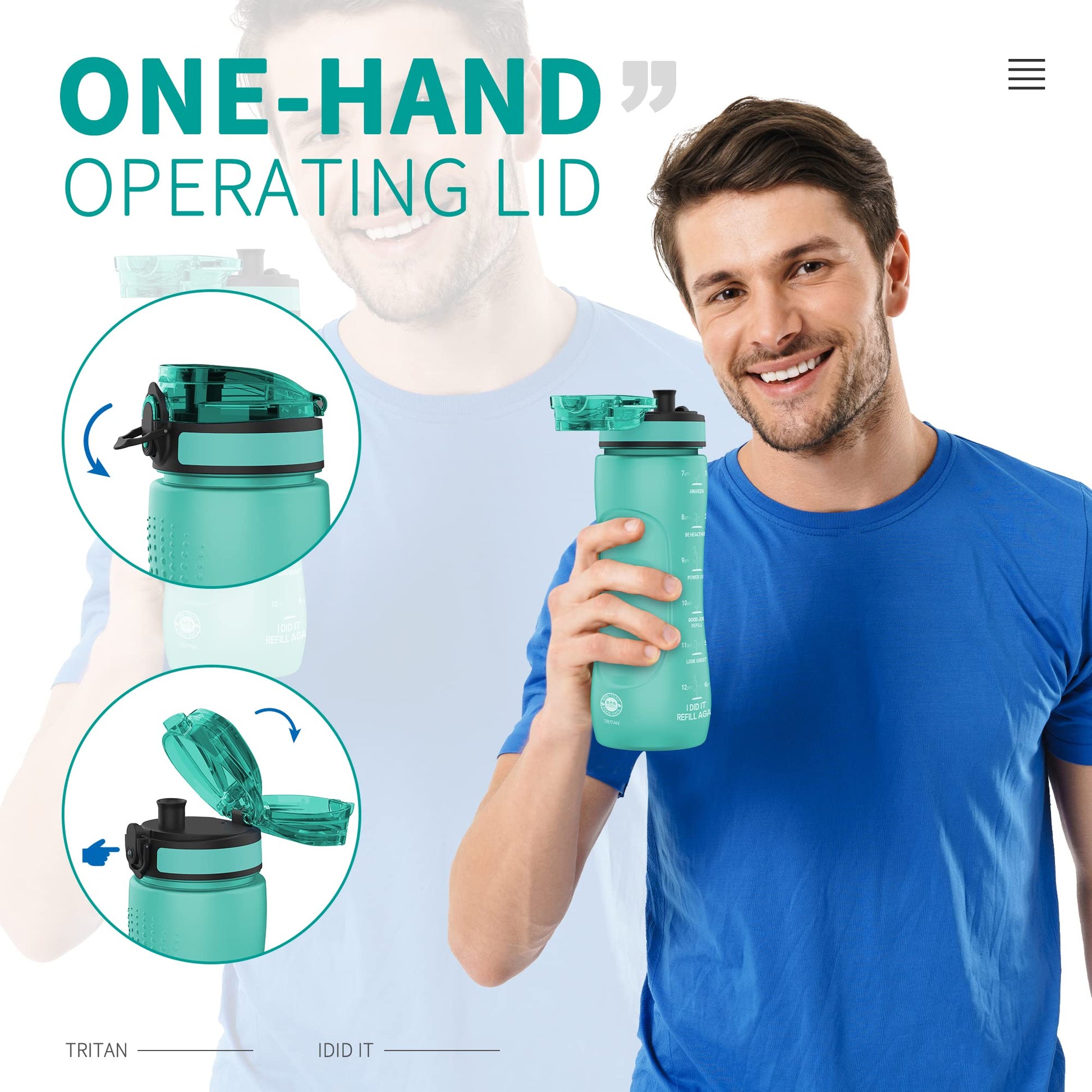 • ONE-HANDED OPERATING - Kitart water bottle comes with a one-handed opening lid. When you are cycling, climbing, or other exercises, you still can drink water with one hand leisurely.