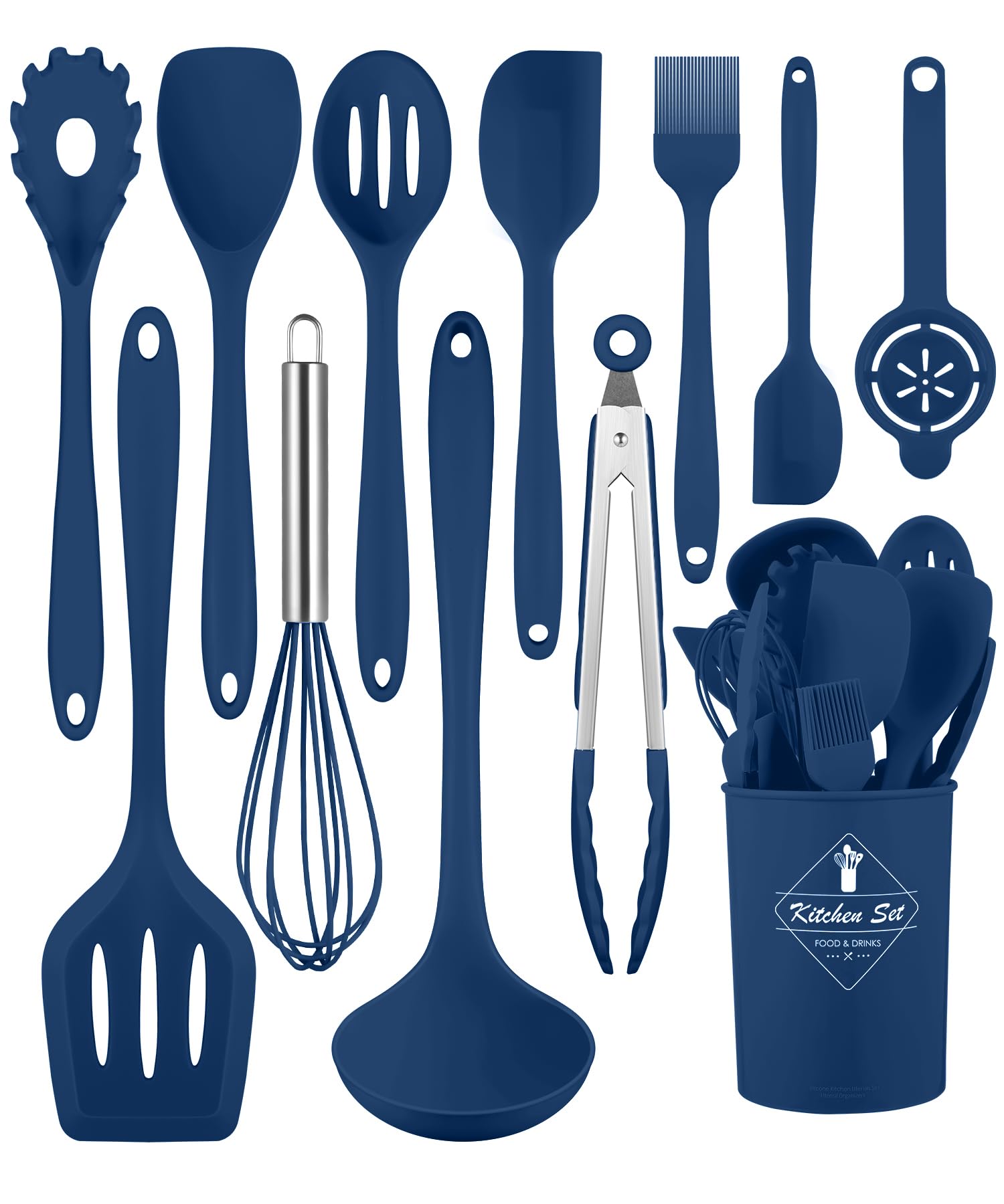 Kitchen Utensils Set-12 Pieces Silicone Cooking Utensils Set (Dishwasher Safe) 392°F Heat Resistant Spatula Set,Kitchen Utensil Set for Nonstick Cookware,Best Kitchen Tools with Holder