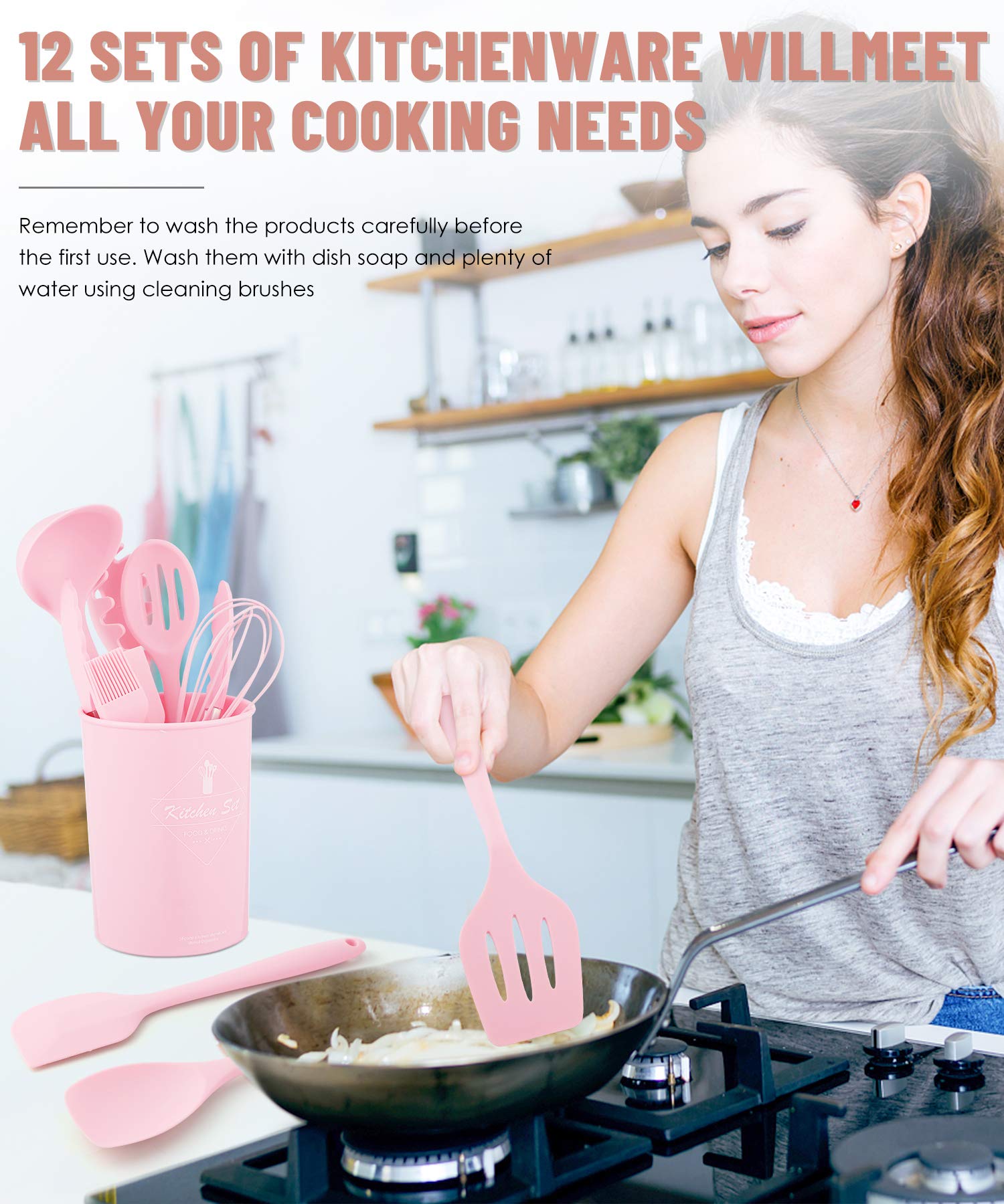 Kitchen Utensils Set-12 Pieces Silicone Cooking Utensils Set (Dishwasher Safe) 392°F Heat Resistant Spatula Set, Nonstick Cookware