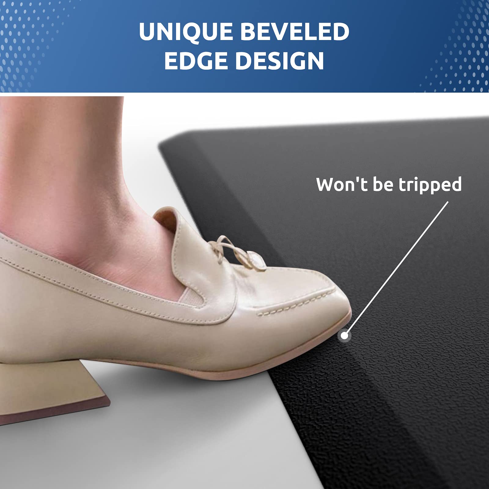 • Safety Design: the diamond-shaped design on the bottom of anti fatigue mats keeps the mat in place and prevents slippage; the bevel edge reduces the risk of tripping on the mat