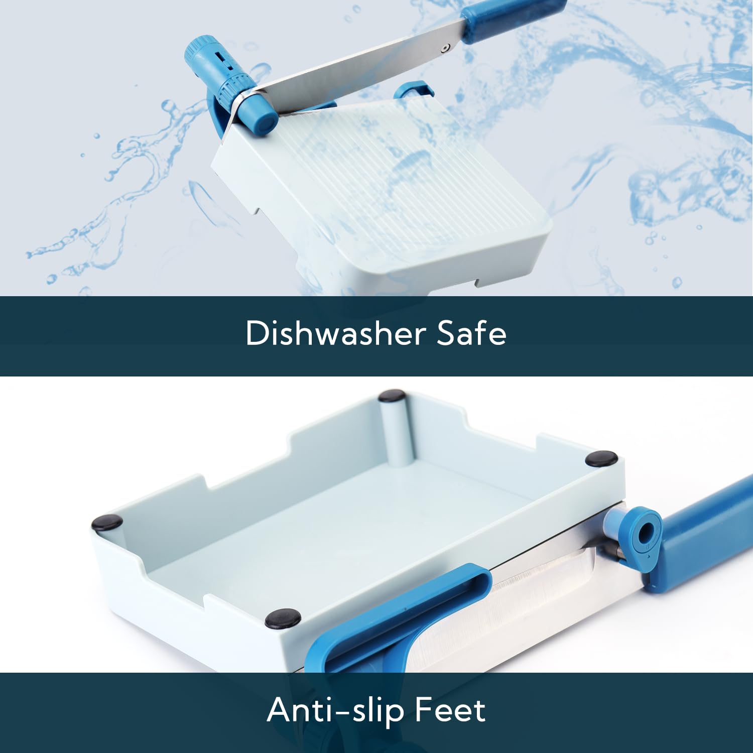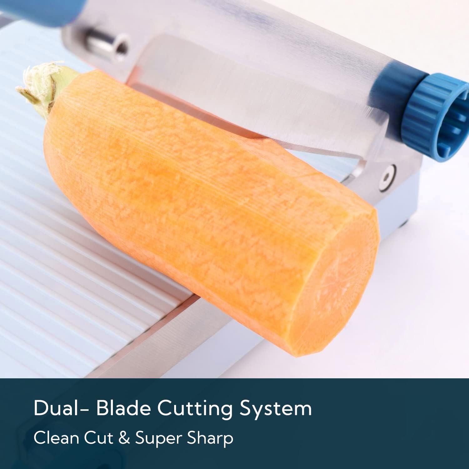 • Good for Seniors, Arthritic and Weak Hands with Dual-Blade Cutting System: This multipurpose food Slicer is designed with two super sharp blades which makes it super easy to slice not only semi-hard and hard cheeses, but can also cut other multiple food such as sausages, biltong/jerky, cucumbers, radishes, lettuce and more. Perfect for Seniors, arthritic and weak hands